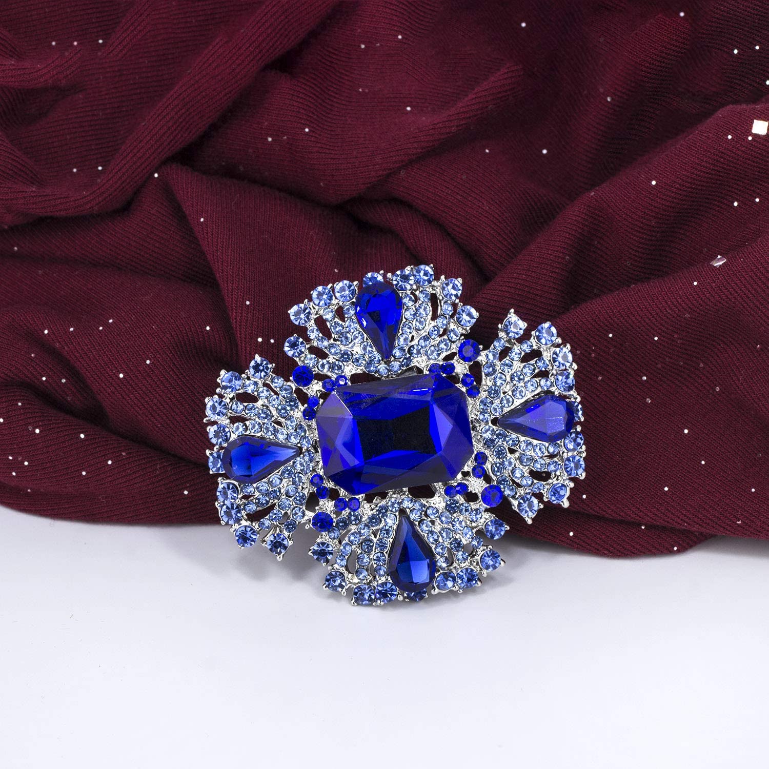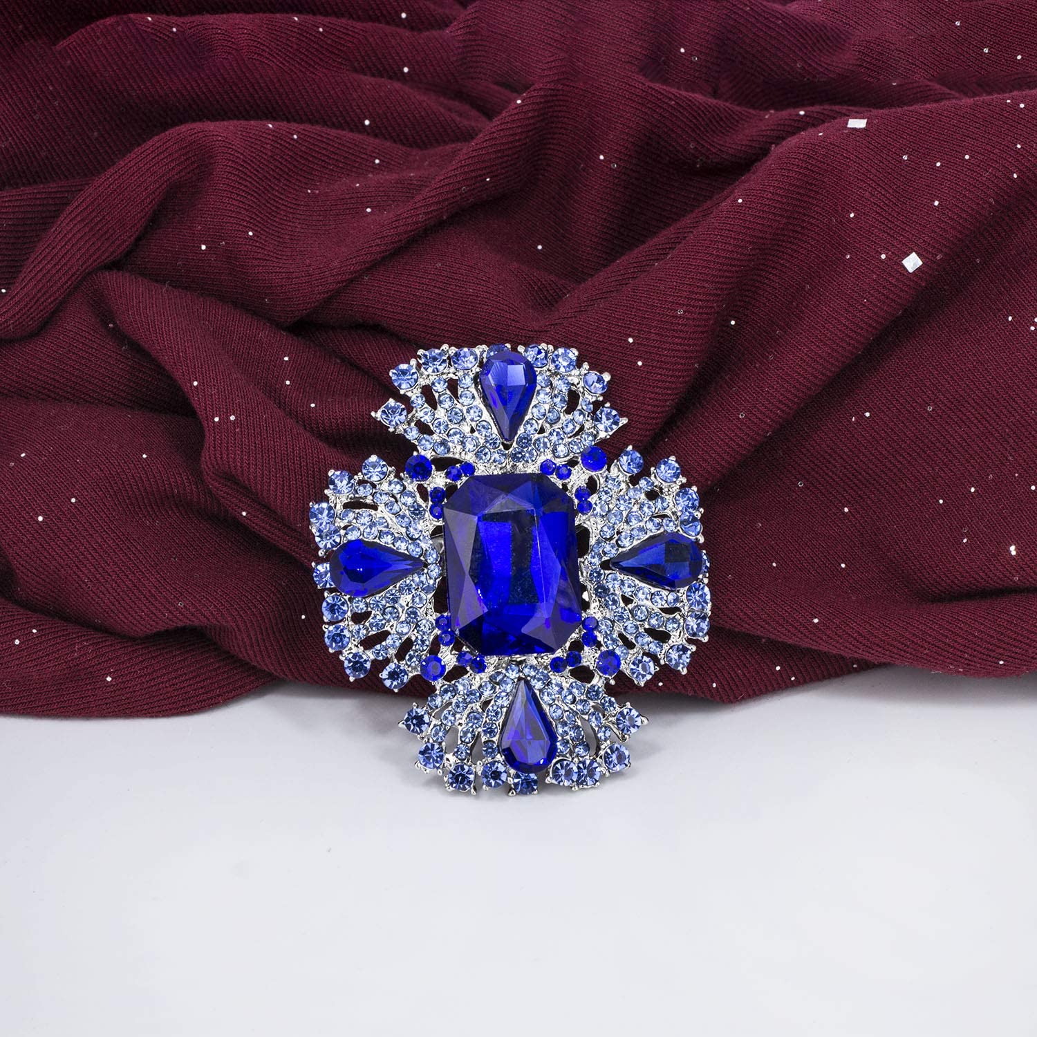 YOQUCOL Vintage Austrian Crystal Rhinestone Cross Flowers Shaped Brooch Pin Elegant Jewelry for Women Girls