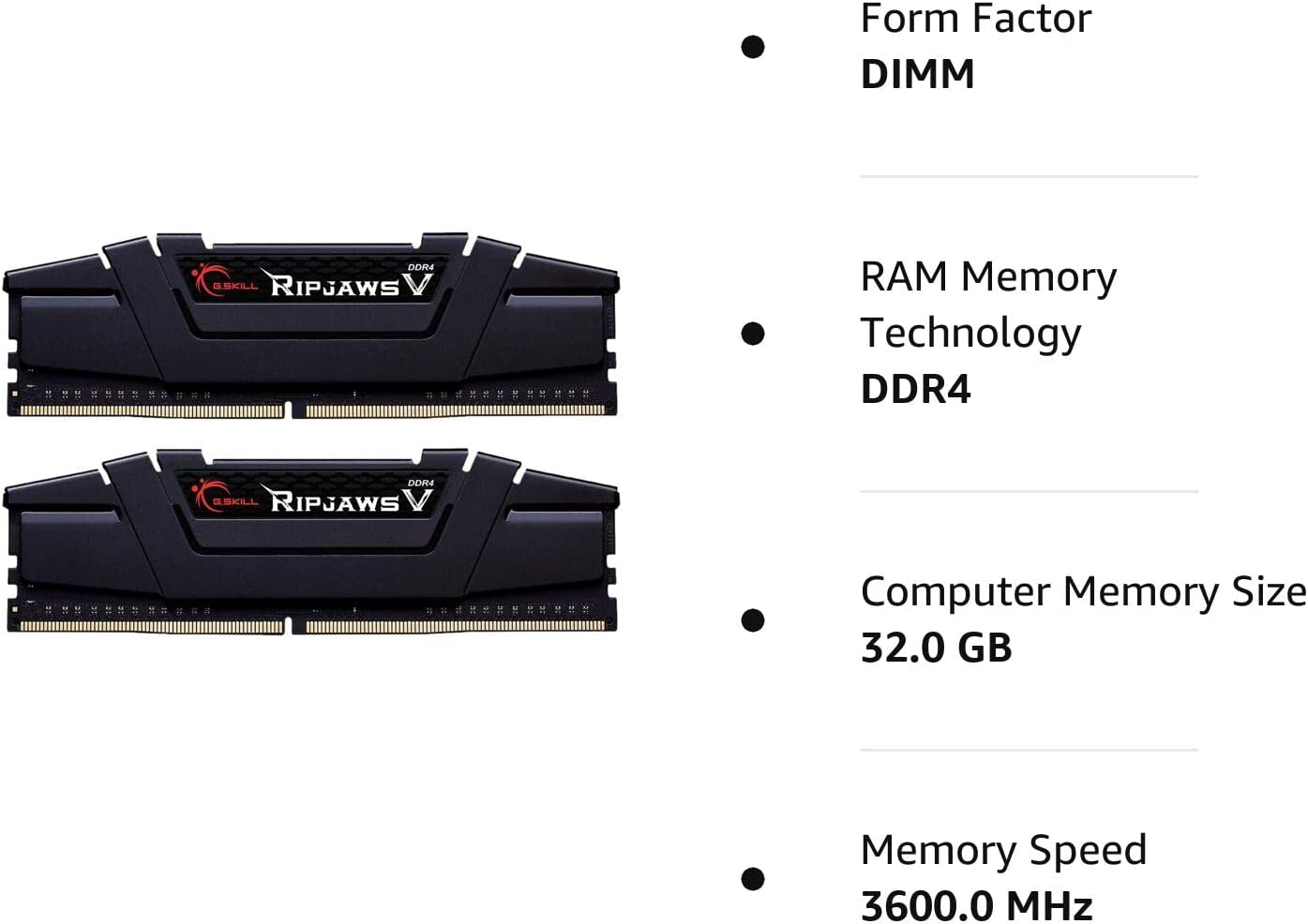 • Brand: G.SKILL, Series: RipJaws V, Model: F4-3600C18D-32GVK