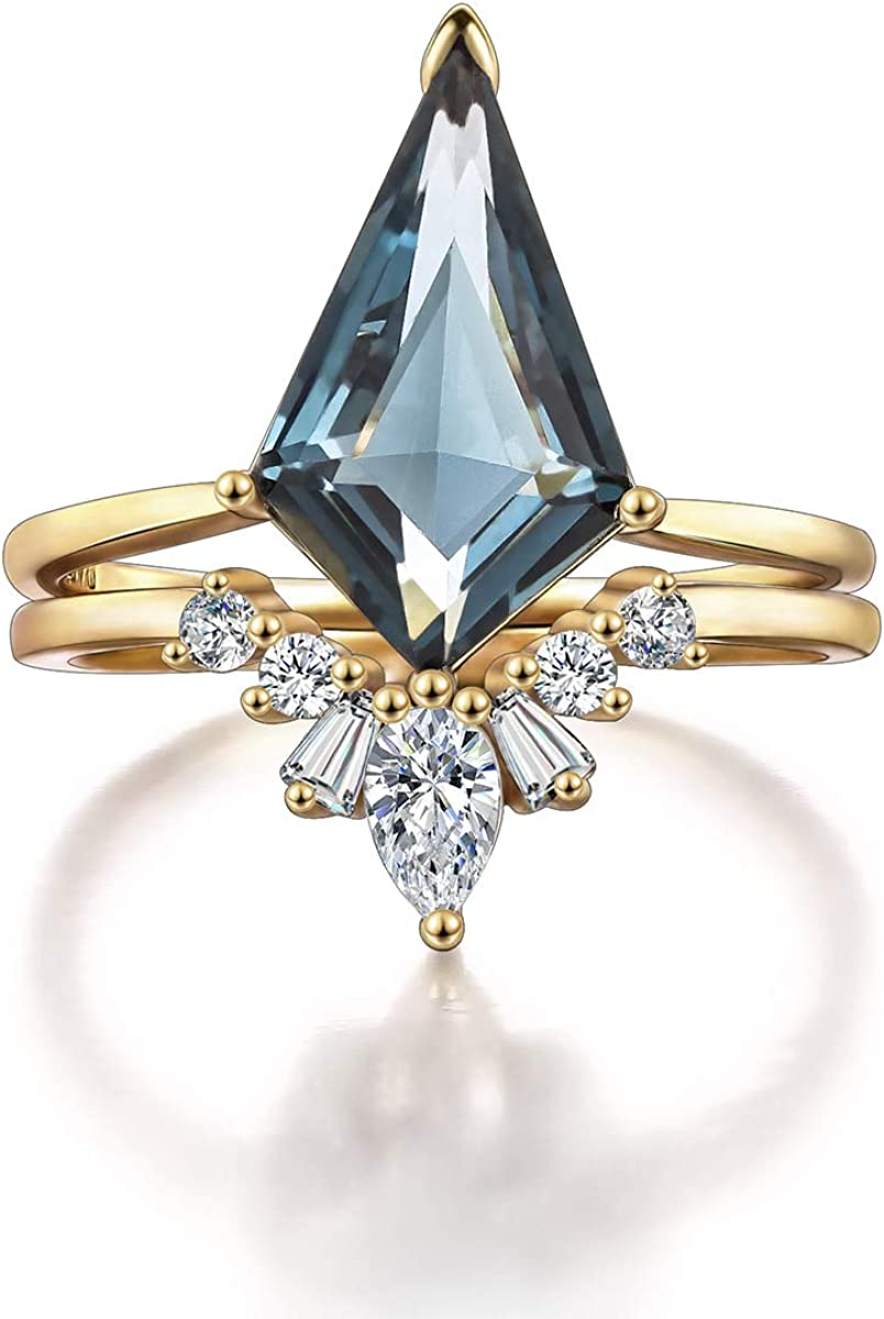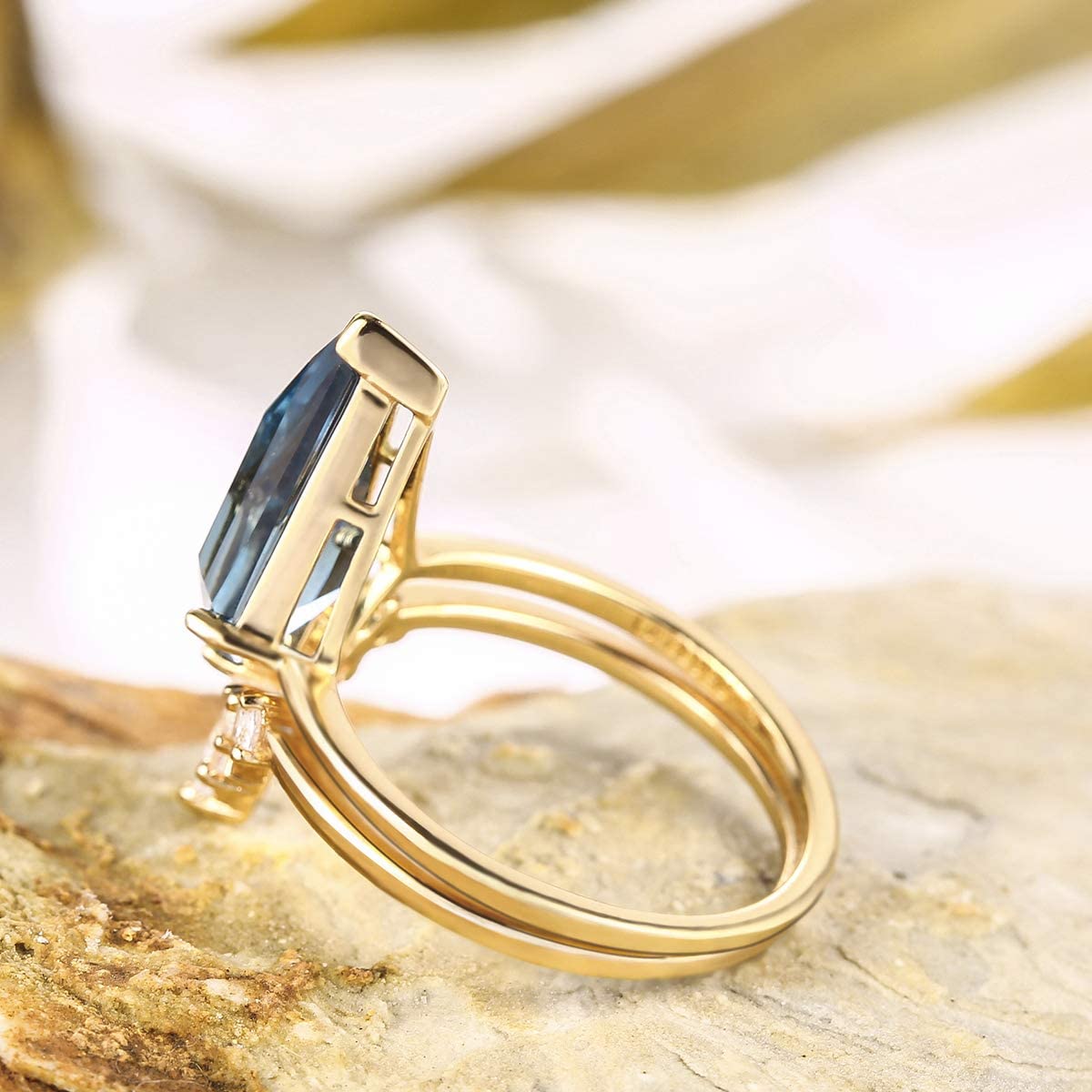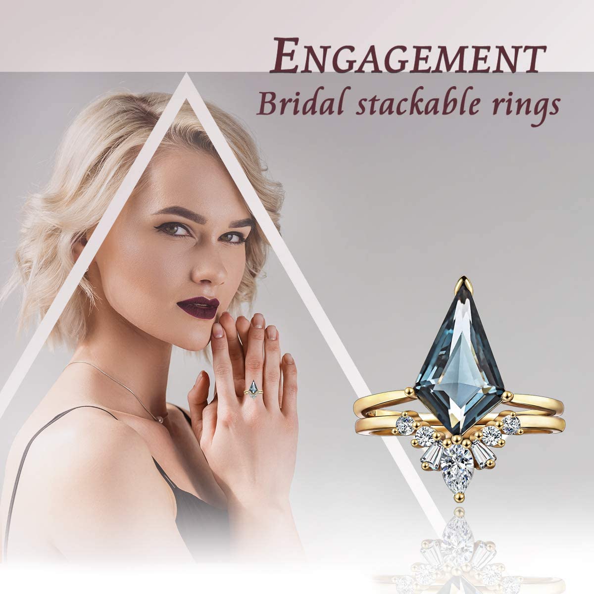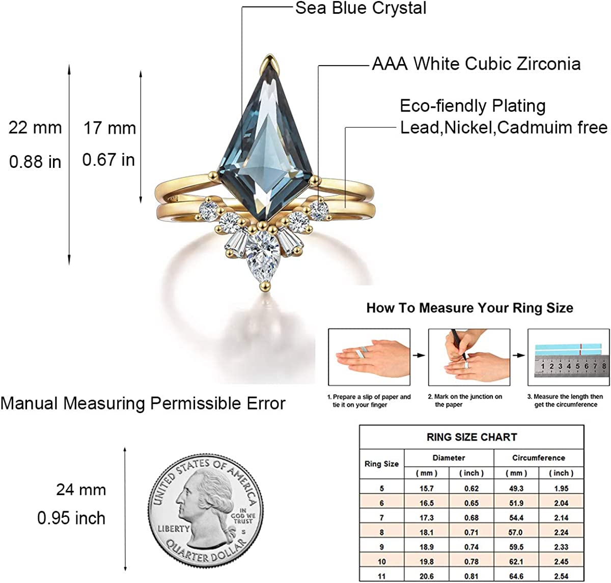 • ★ Engagement Ring Material: The blue crystal stackable rings, with champagne gold plated. The womens ring gives a bright, shiny, long-lasting color. Each cubic zirconia stone is hand set by artisans . The biggest feature is no nickel, no lead, no cadmium, anti-tarnish, hypoallergenic.