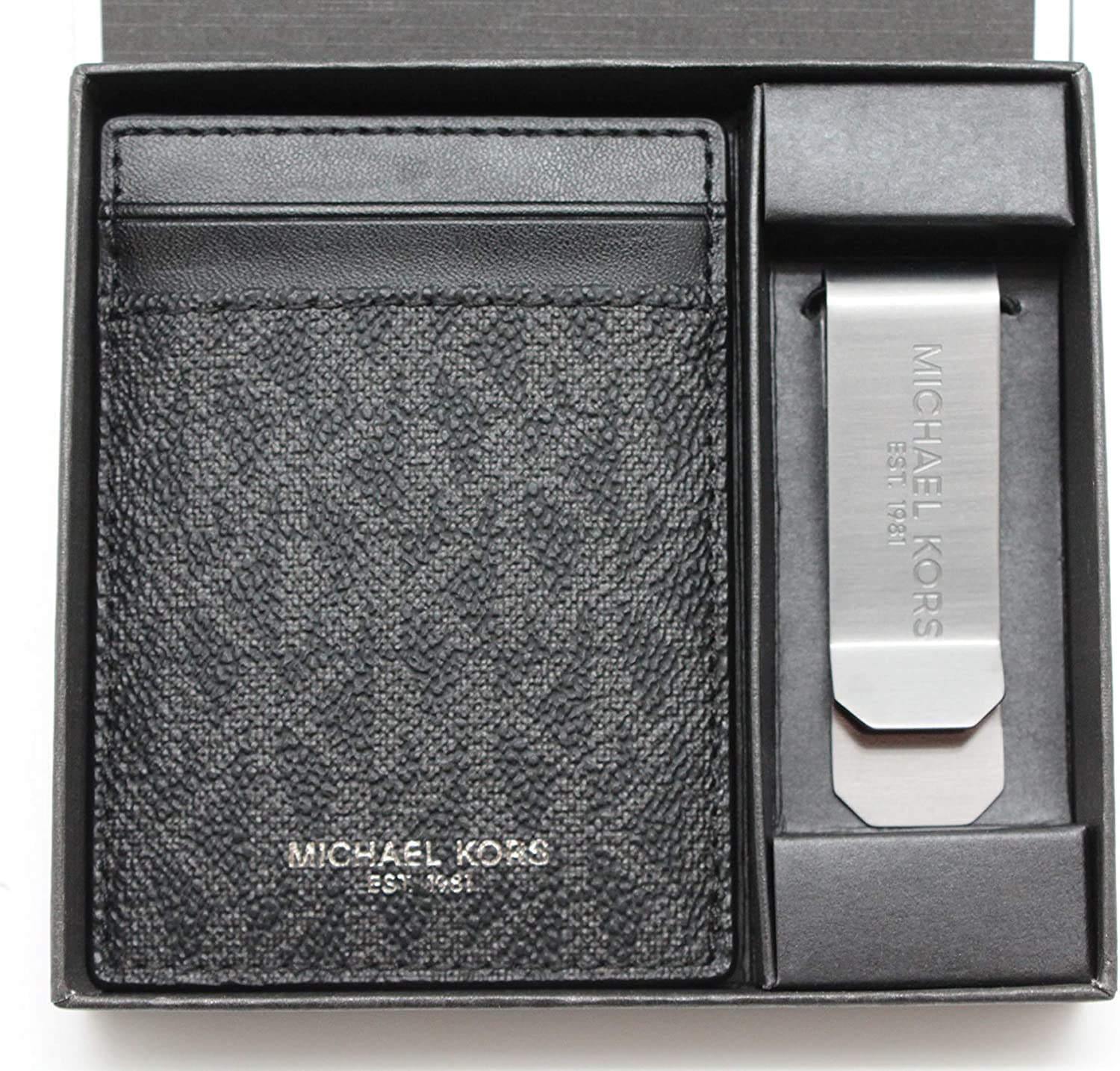 Michael Kors Men’s Leather Gifting Money Clip Card Case Box Set Black