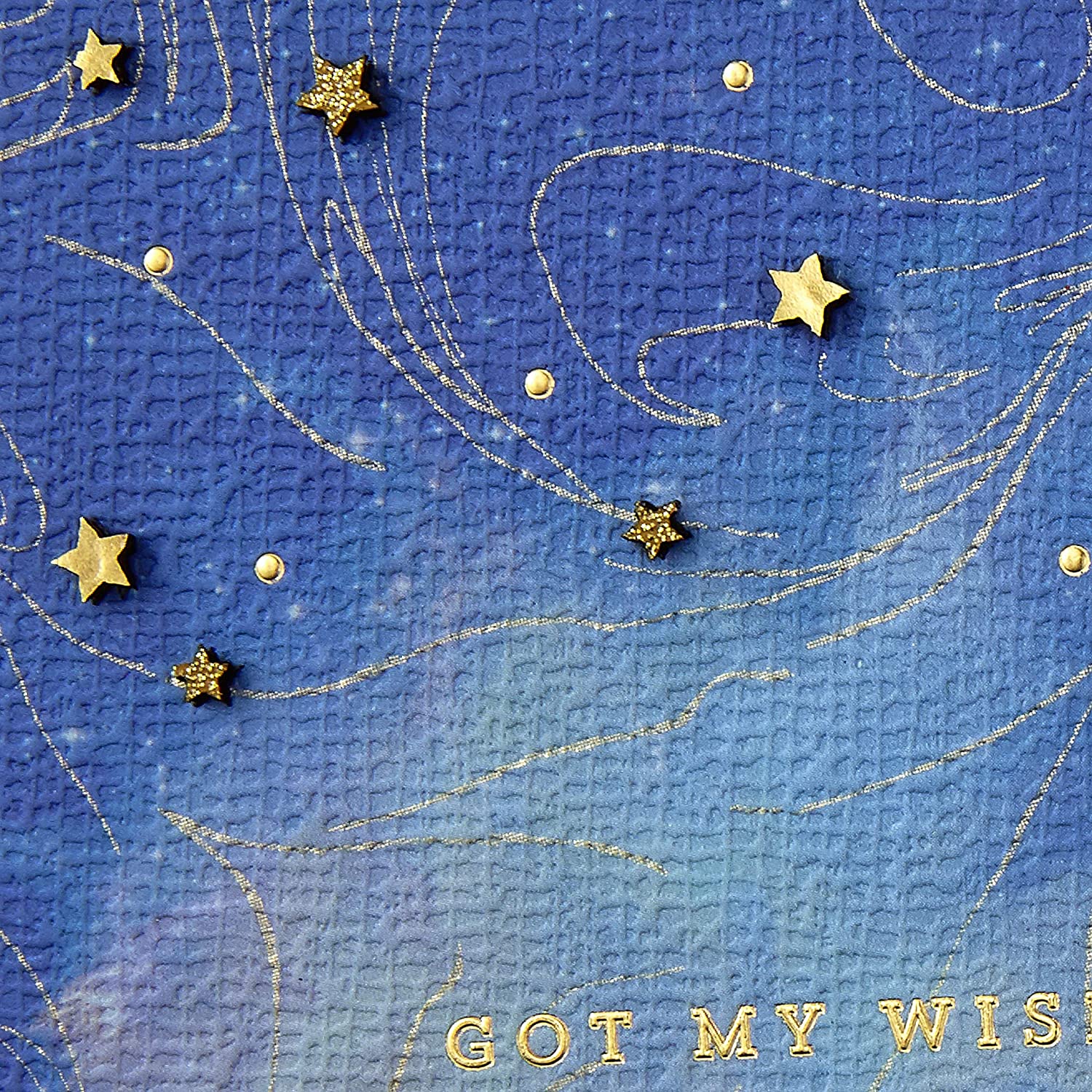 - Cover features gold foil stars and "Got my wish" lettering on a textured, painted night sky background. Inside reads: ". . . You."