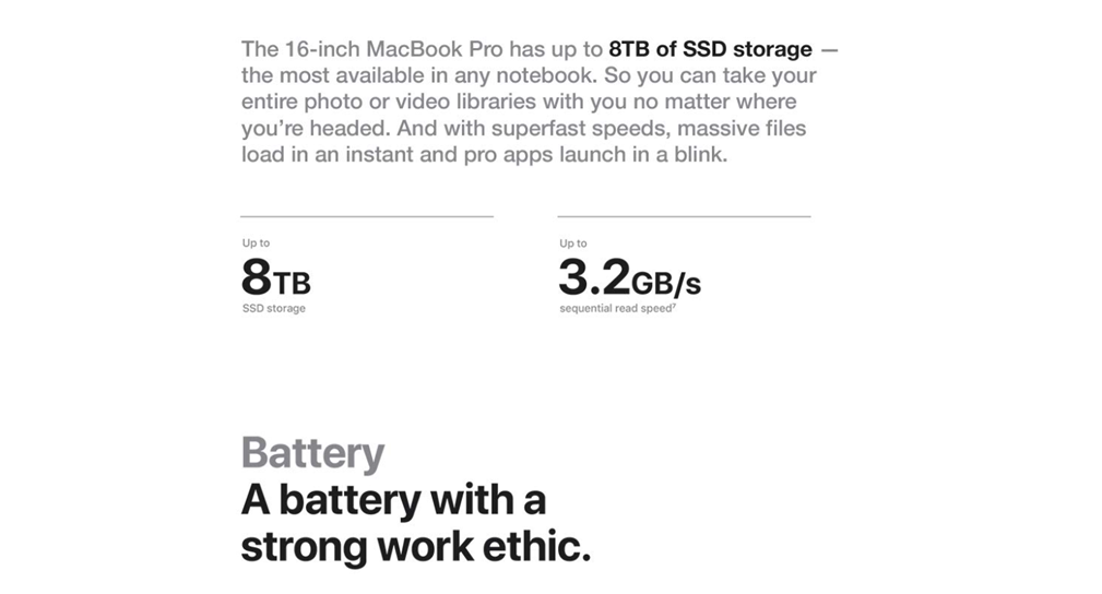 | In the Box | 16-inch MacBook Pro, 96W USB-C Power Adapter, USB-C Charge Cable (2 m) |