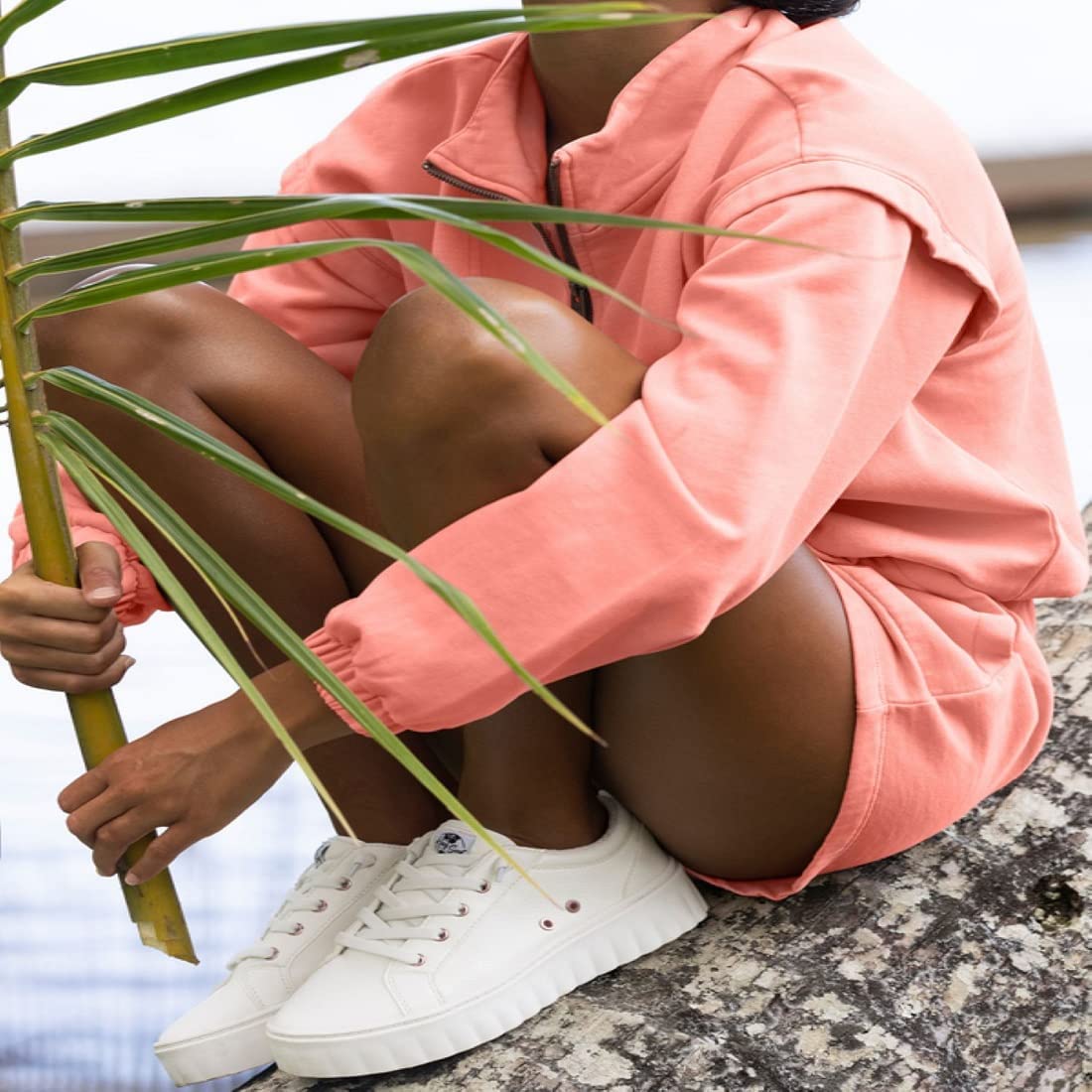 Shoes for women featuring a faux leather upper, elasticized laces and mesh eyelets for breathability.