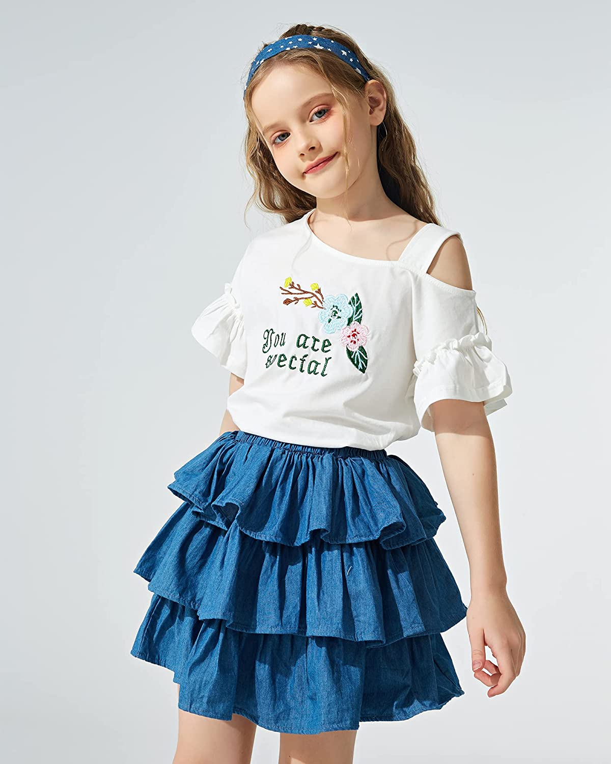 100% cotton. These skirts for girls are lightweight soft and durable.