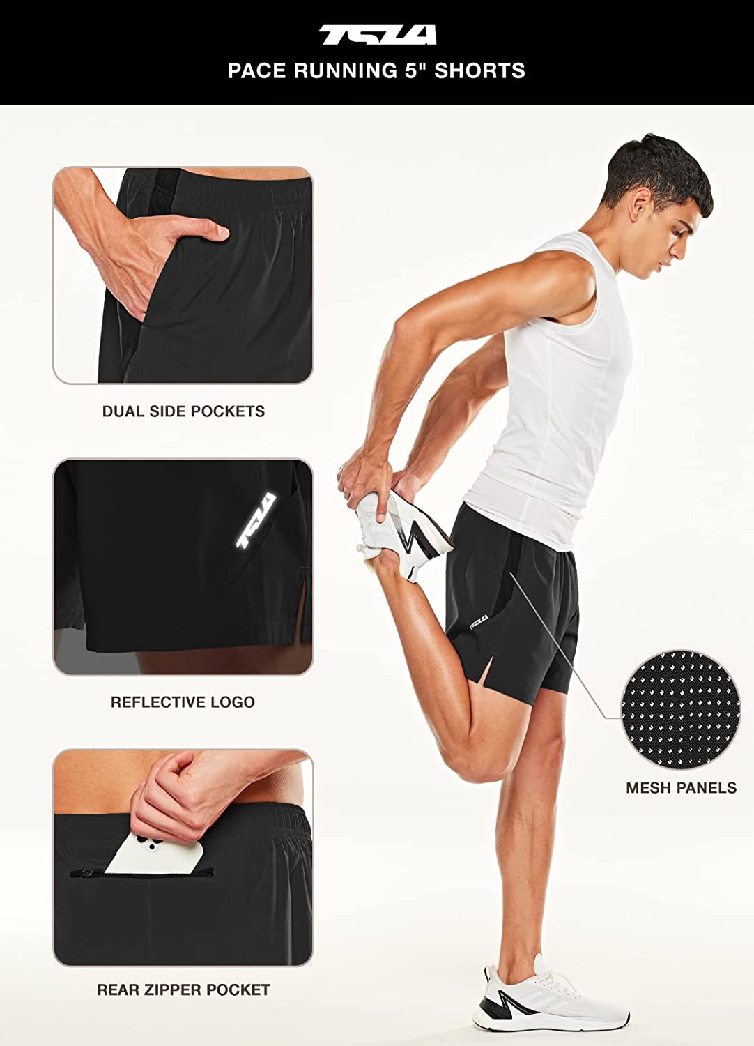 TSLA Men's Active Running Shorts, Training Exercise Workout Shorts, Quick Dry Gym Athletic Shorts with Pockets
