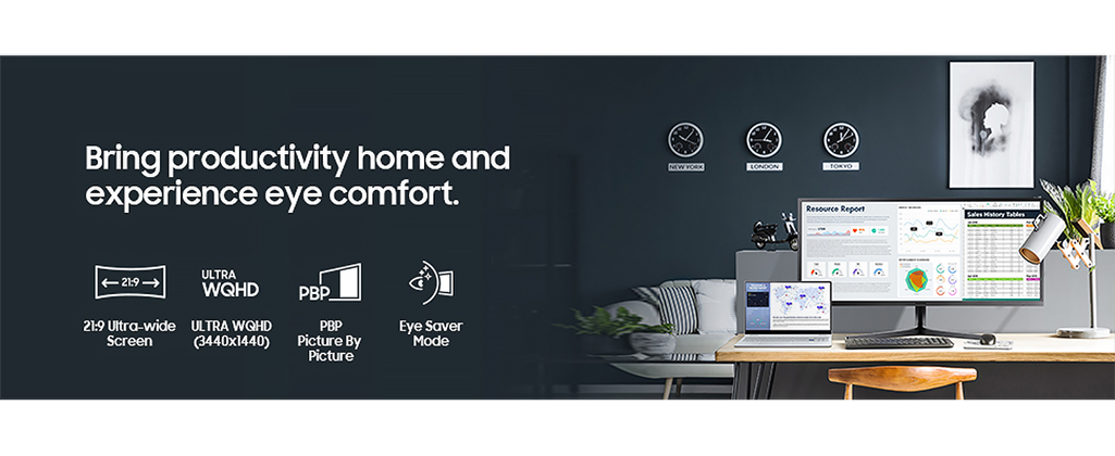 - 34-INCH ULTRAWIDE MONITOR with WQHD resolution (3440 x 1440p).Wall-Mount (Size mm) 100.0 x 100.0