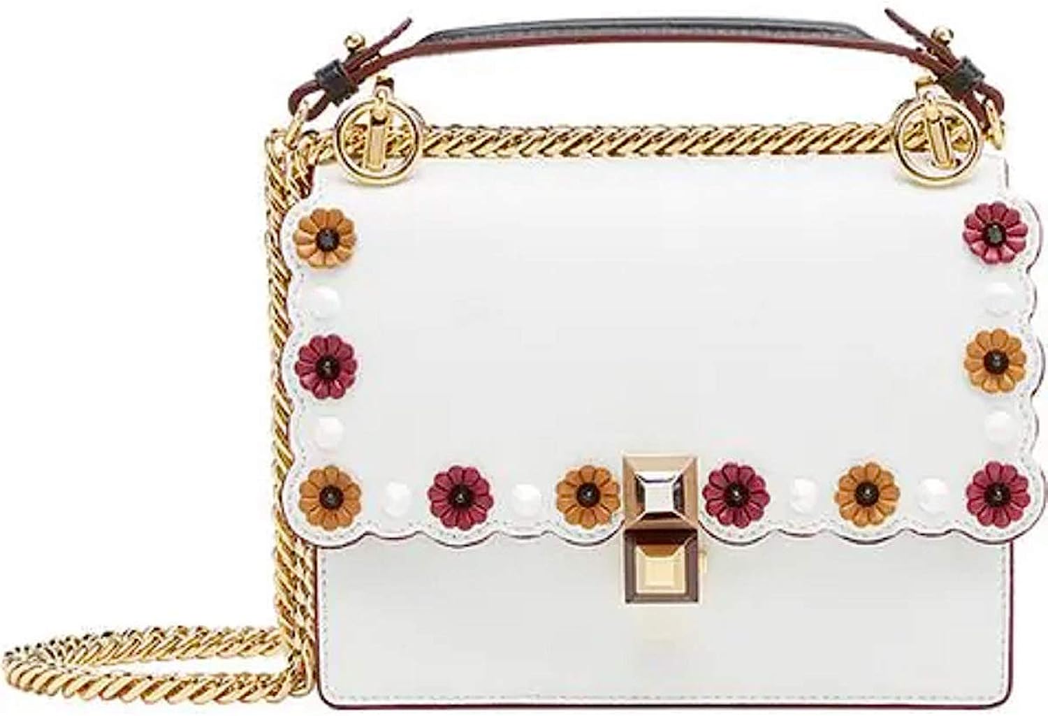 FENDI Womens Kan I White Multi Color Flowers Soft Leather Shoulder Bag 8M0381