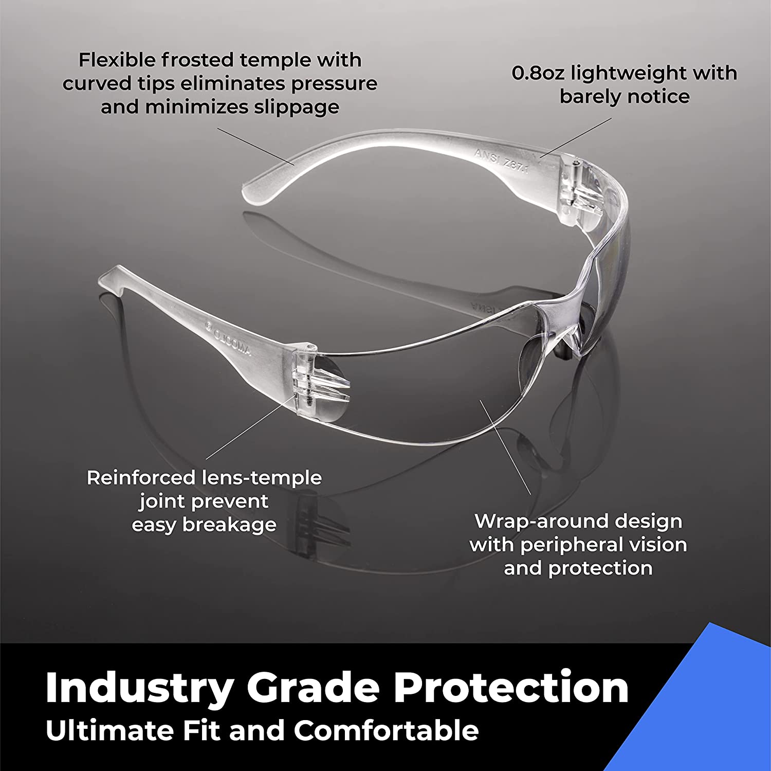 MULTIPACK FOR DAILY USE. Bulk pack of 24 pairs of Individually-Wrapped Protective Safety Glasses. Reasonable price for your everyday protection. Let Amoolo guard your eyes against particles, splashes and debris to the naked eye.