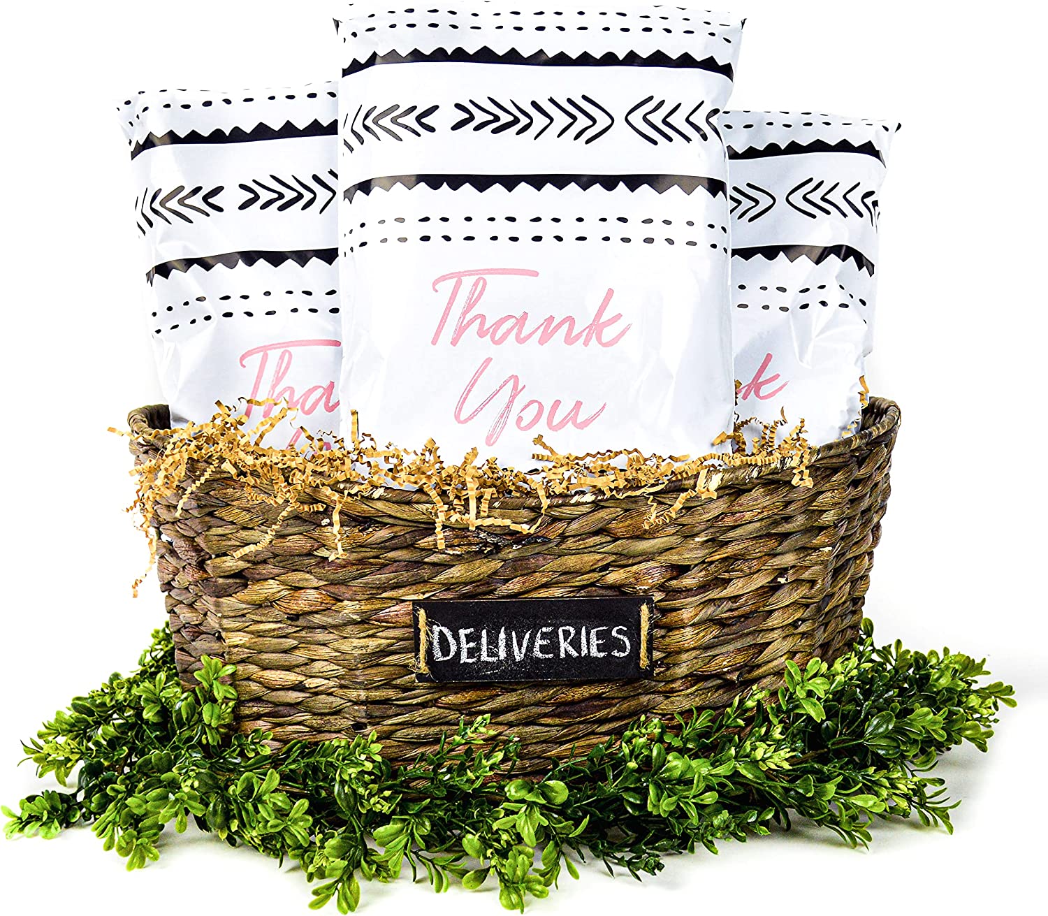 10x13 Poly Mailers Pack of 100 Reusable Shipping Supplies Envelopes Mailing Bags Clothing Small Business Plastic Packaging Sticky Self Seal Cute Pink Thank You African Fig