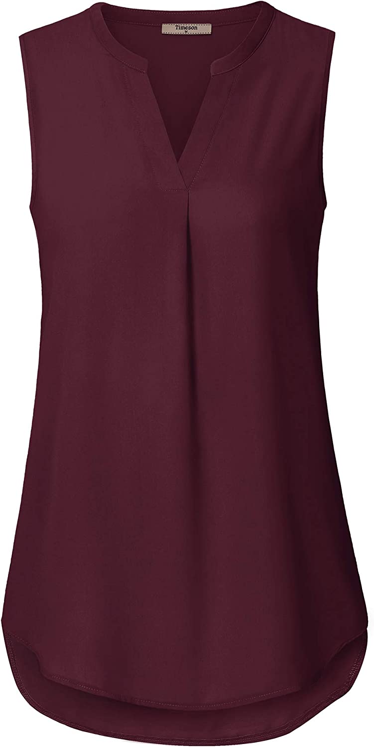 Timeson Women's Chiffon V Neck Sleeveless Blouse Tops Office Work Shirts