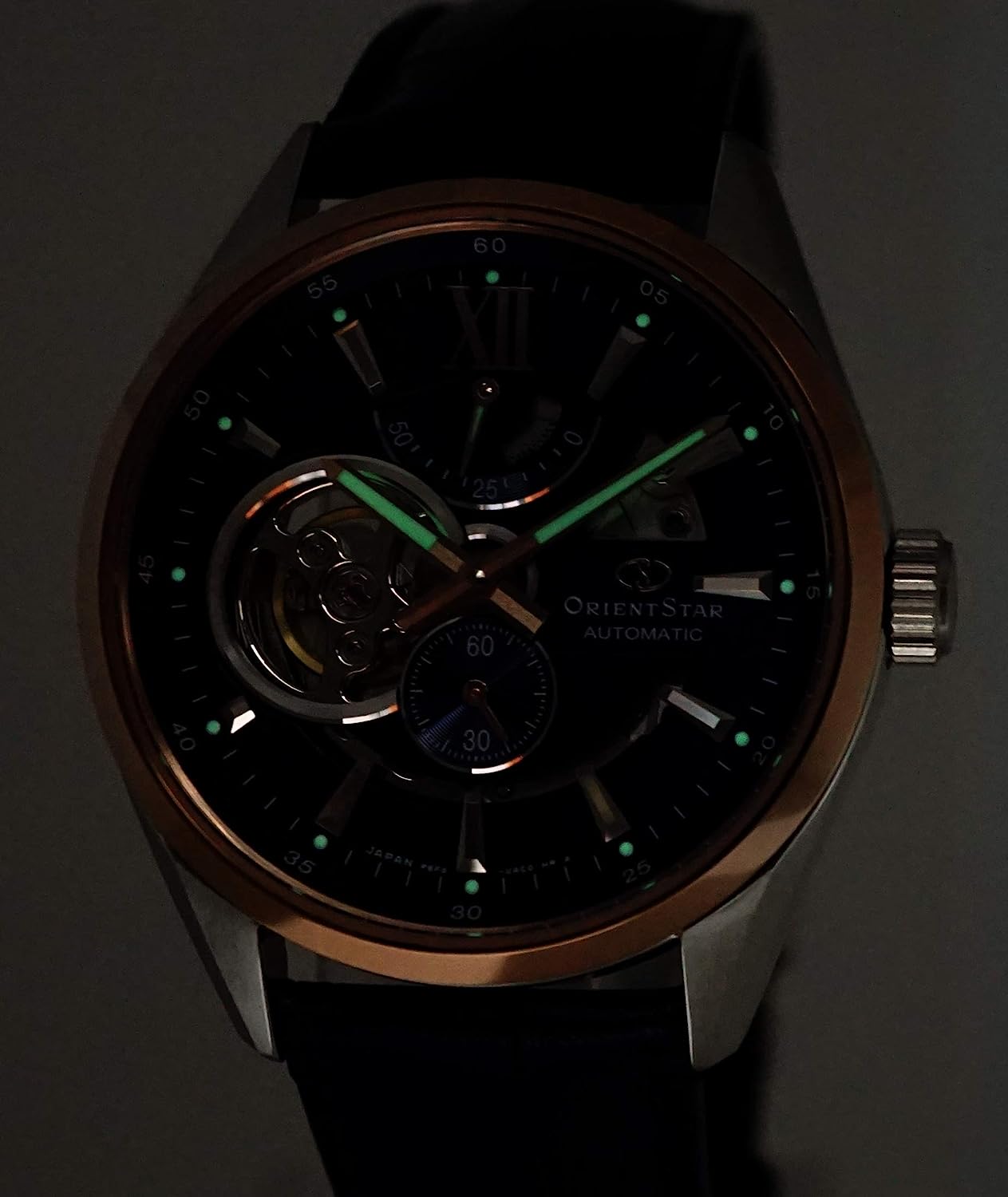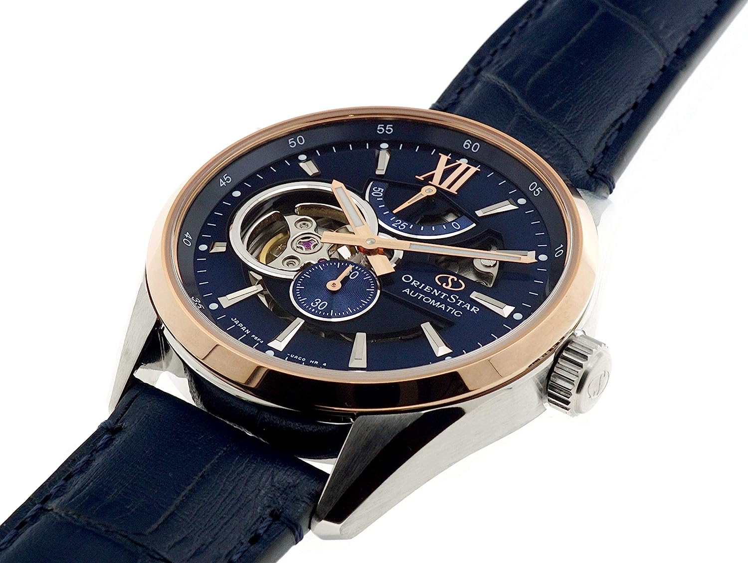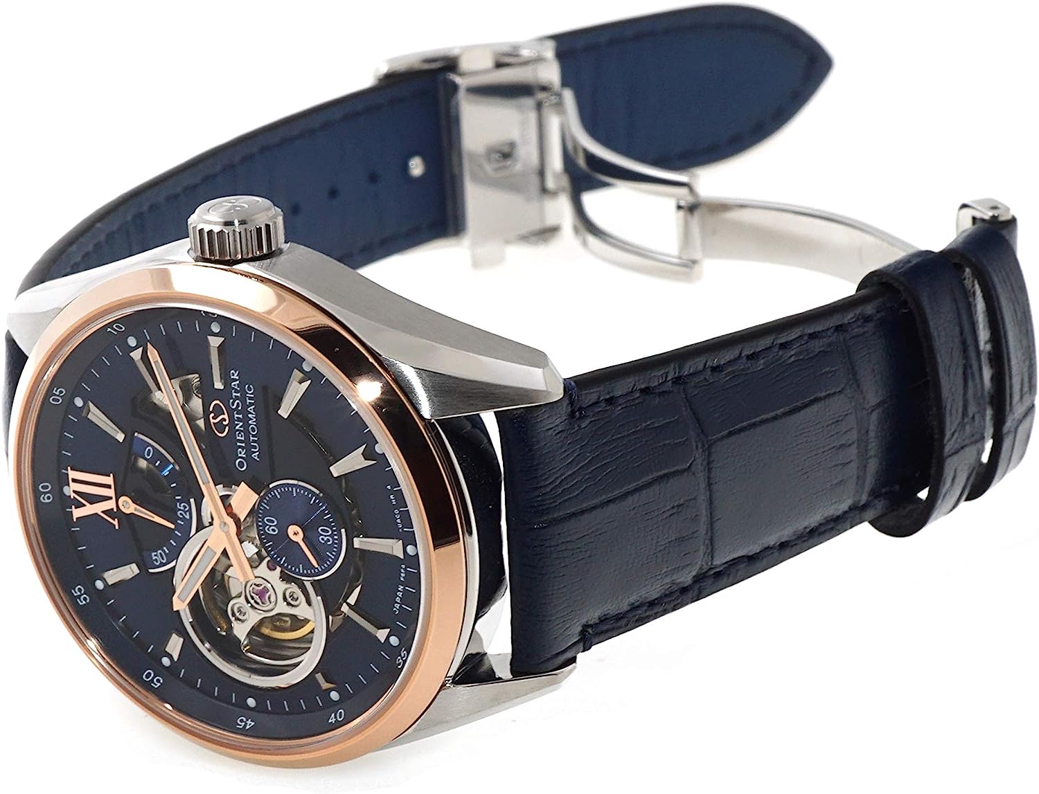 Orient Star Limited Edition Semi Skeleton Blue Dial Rose Gold Sapphire Glass Automatic Watch RE-AV0111L