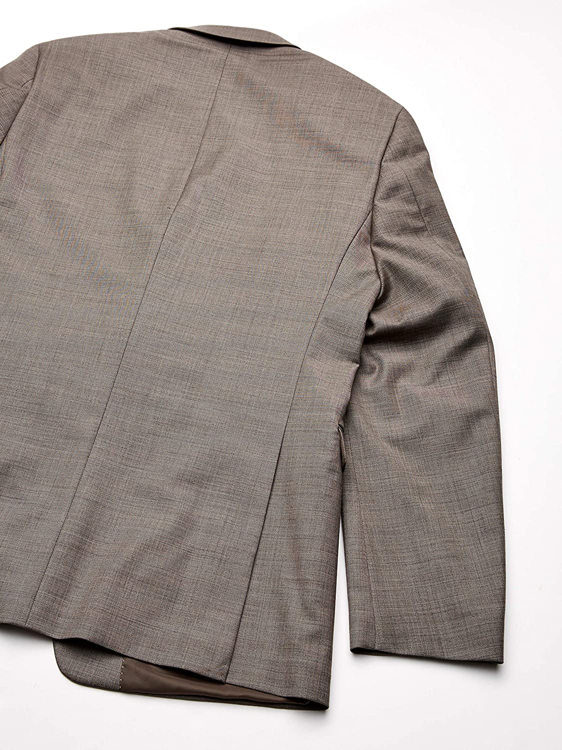 - Side vented, flap-pocket jacket and flat front, non-cuffed pants for a sleek, contemporary look