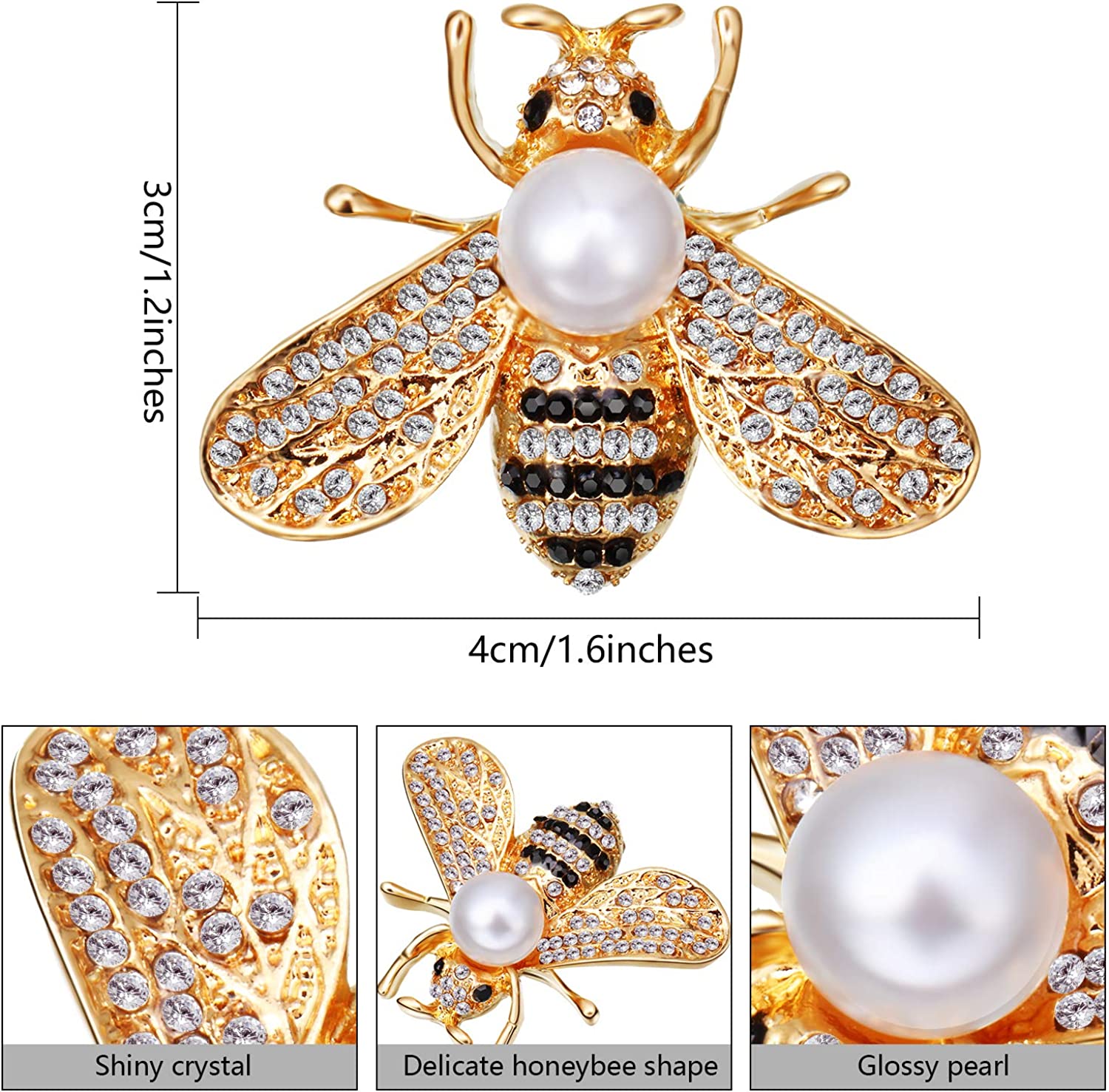 WILLBOND 4 Pieces Honey Bee Brooch Lapel Pins for Women Crystal Insect Themed Bee Brooches with Faux Pearl Fashion Gift for Birthday Dating Party Anniversary