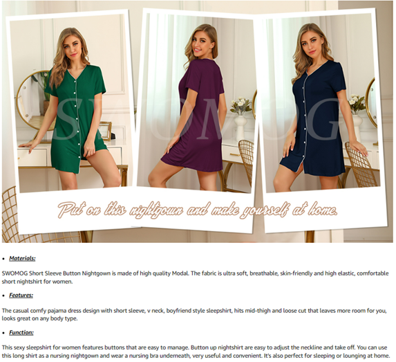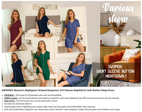 • Materials: SWOMOG Short Sleeve Button Nightgown is made of high quality Modal. The fabric is ultra soft, breathable, skin-friendly and high elastic, comfortable short nightshirt for women.