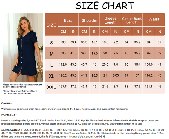 • Ocassions: Womens sexy pajamas is great for sleeping in, lounging around the house, hospital wear and even perfect for nursing.