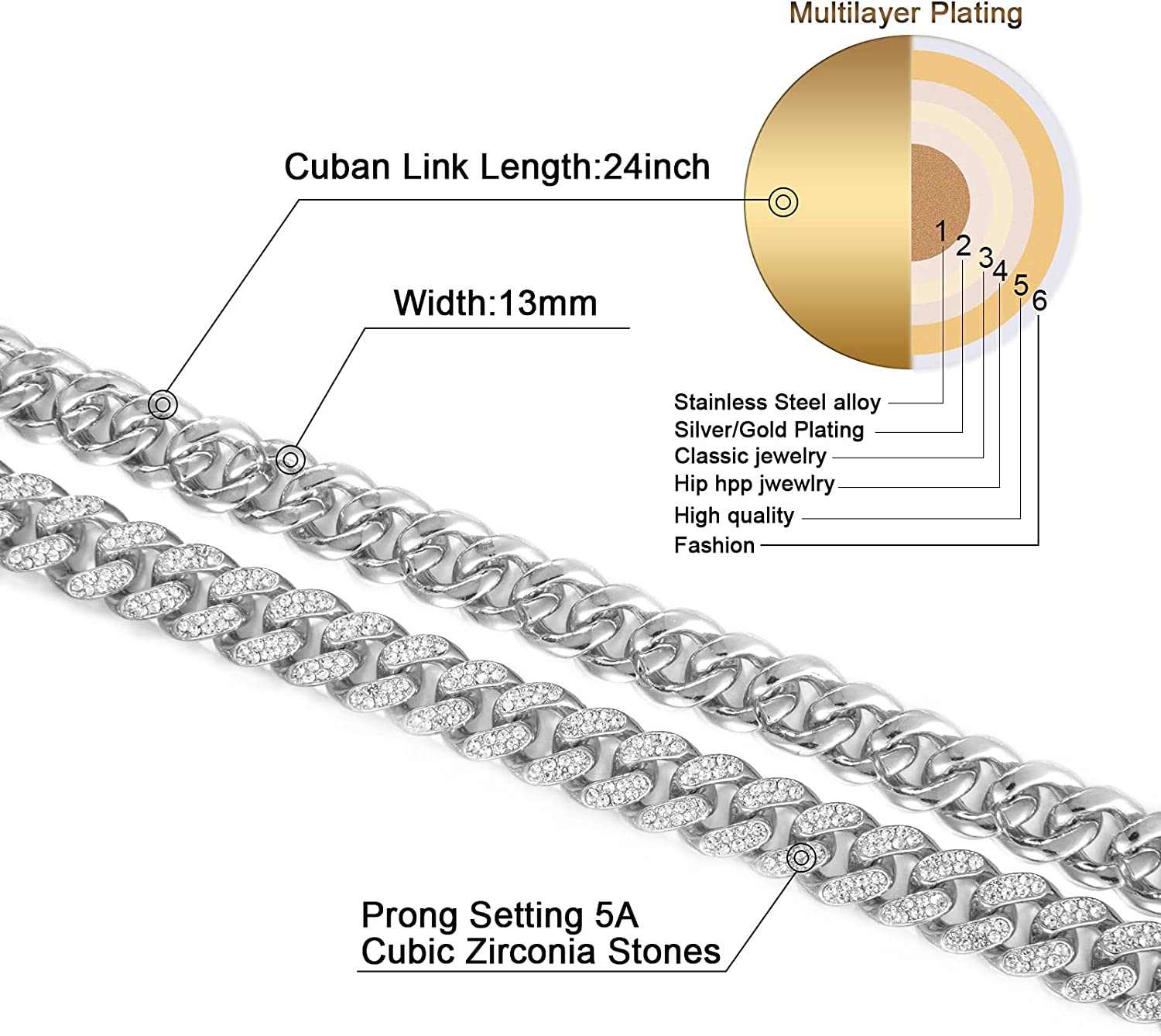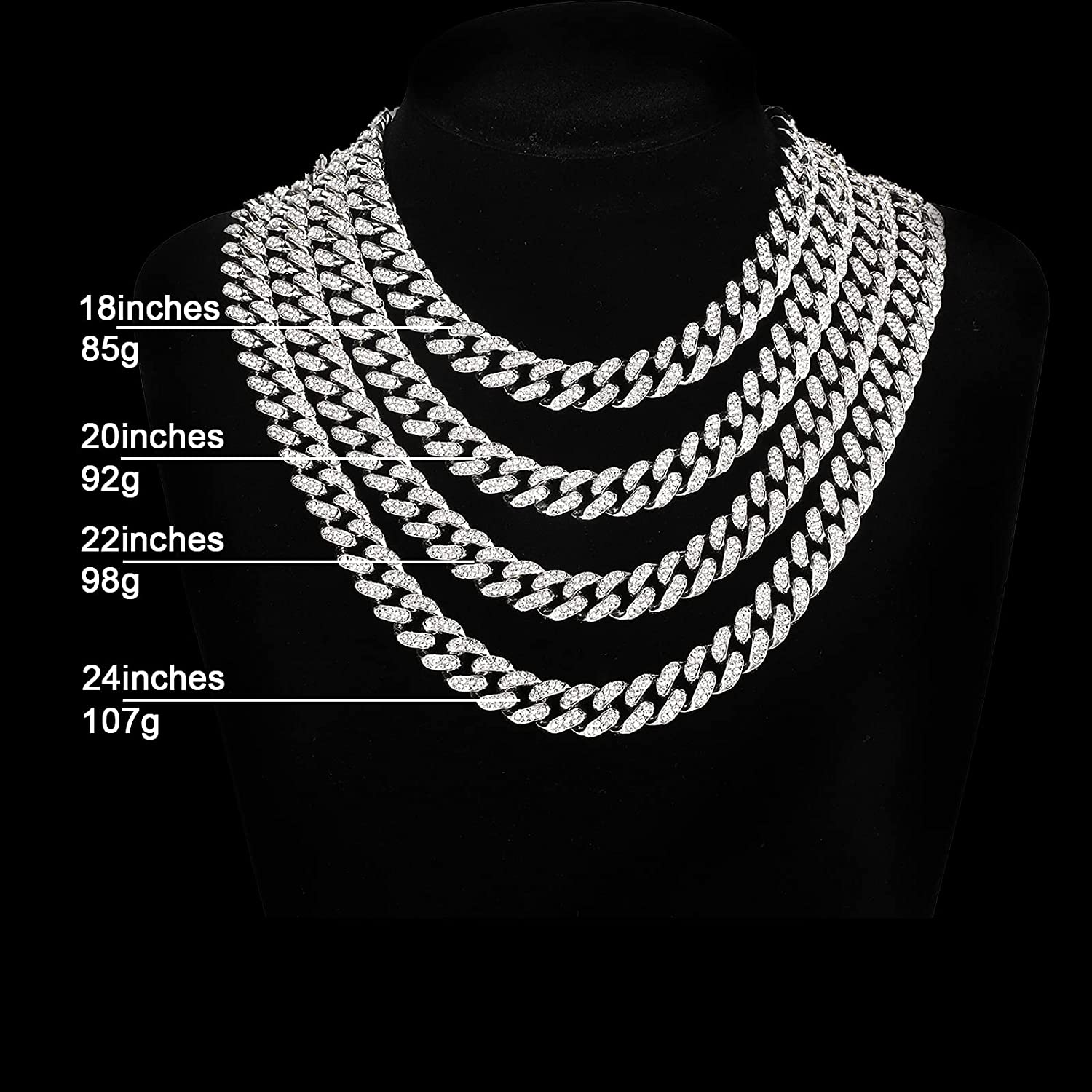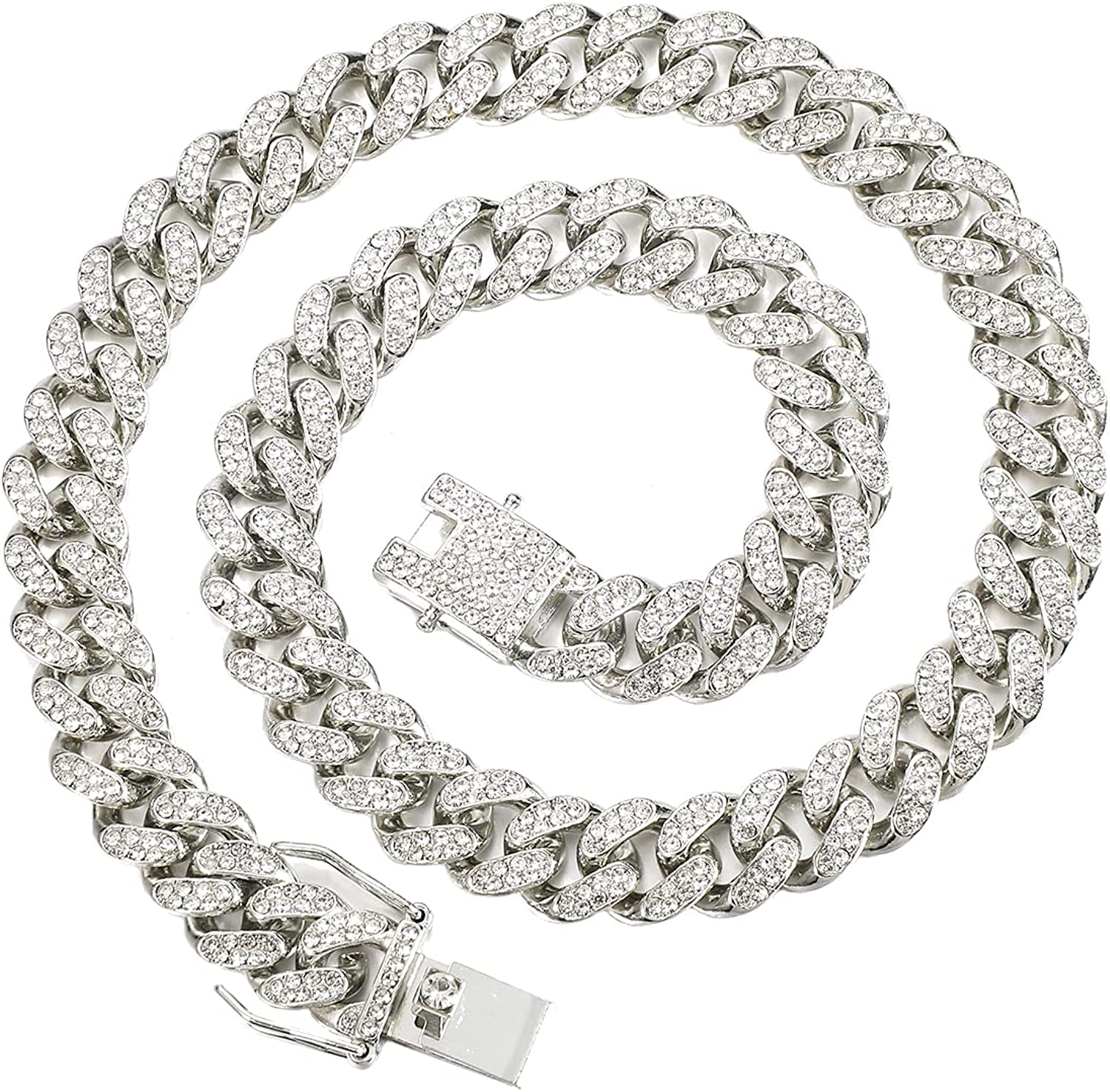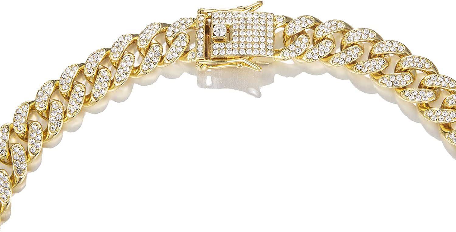 • Material:High quality gold silver plated chain necklace with over 300 rhinestones,Hand-made process to ensure product can be precious and shine more,all the rhinestones are hand inlaid by craftsmen,cuban link necklace it's nickel-free, lead-free and harmless to health