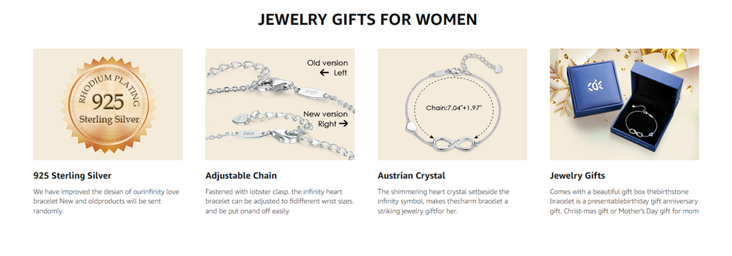 ? 925 STERLING SILVER BRACELETS ? CDE women’s bracelets are made of gold-plated 925 sterling silver. Fastened with a lobster clasp, this adjustable bracelet is embellished with a heart charm and an infinity symbol glittering with Austrian crystals.