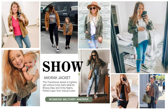 • Features: Military Anorak Jacket Comes with Pockets and Adjustable Drawstring Waist, Full Zip Up and Snap Button Closure, High Neckline, Full Sleeves with Velcro, Four Front Patch Pockets.