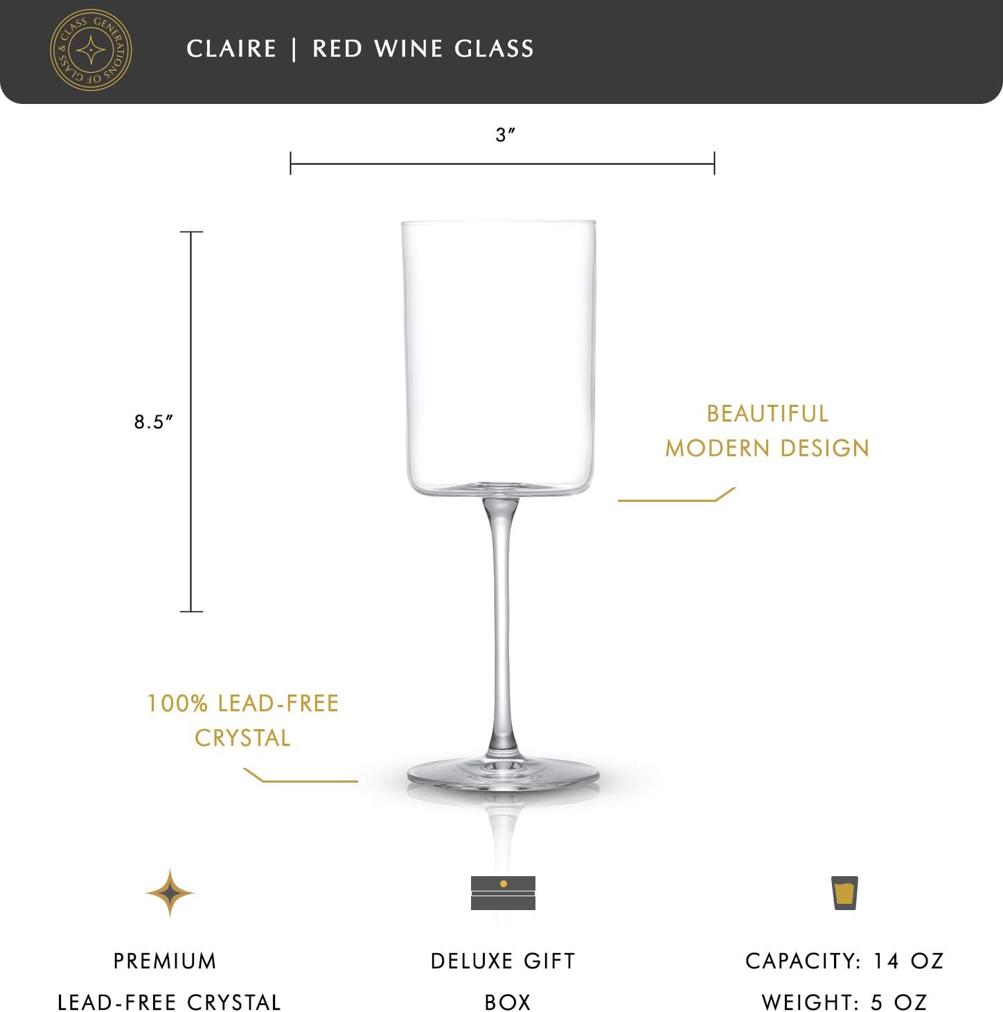 MODERN DESIGN: The Claire tall wine glasses come with an ultra-elegant, modern design, having large rims and slender stems. The crystal body is shaped like a perfect cylinder, adding a sparkly note to your favorite wine.