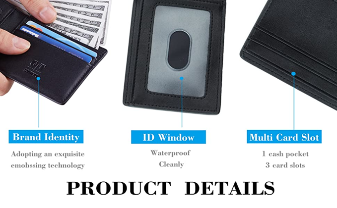 GREAT DIMENSION & FUNCTIONALITY: 4 x 3 inches, 1 cash pocket, 3 card slots and 1 ID window.