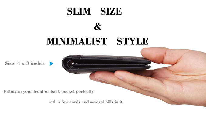 SMALL SIZE & MINIMALIST STYLE: fitting in your front or back pocket perfectly with a few cards and bills in it.