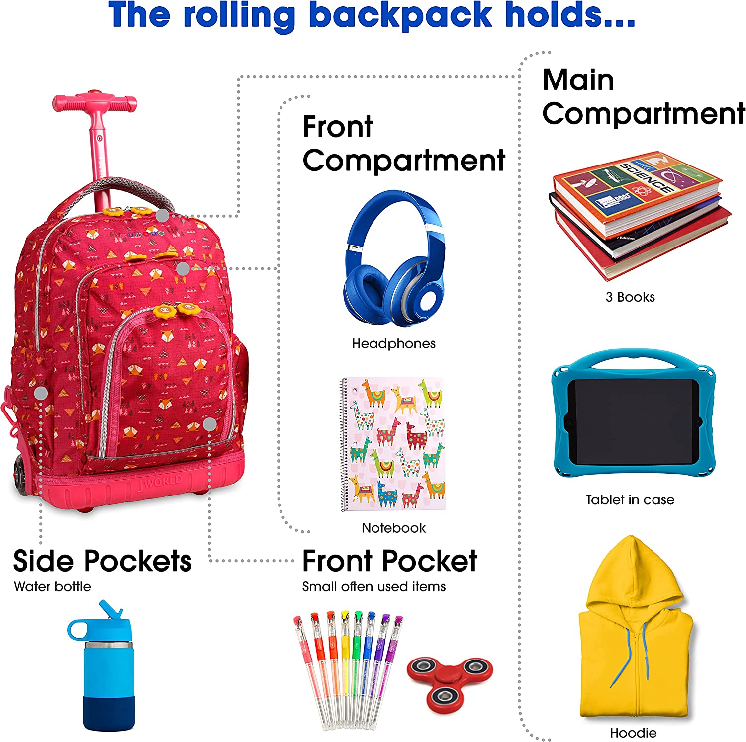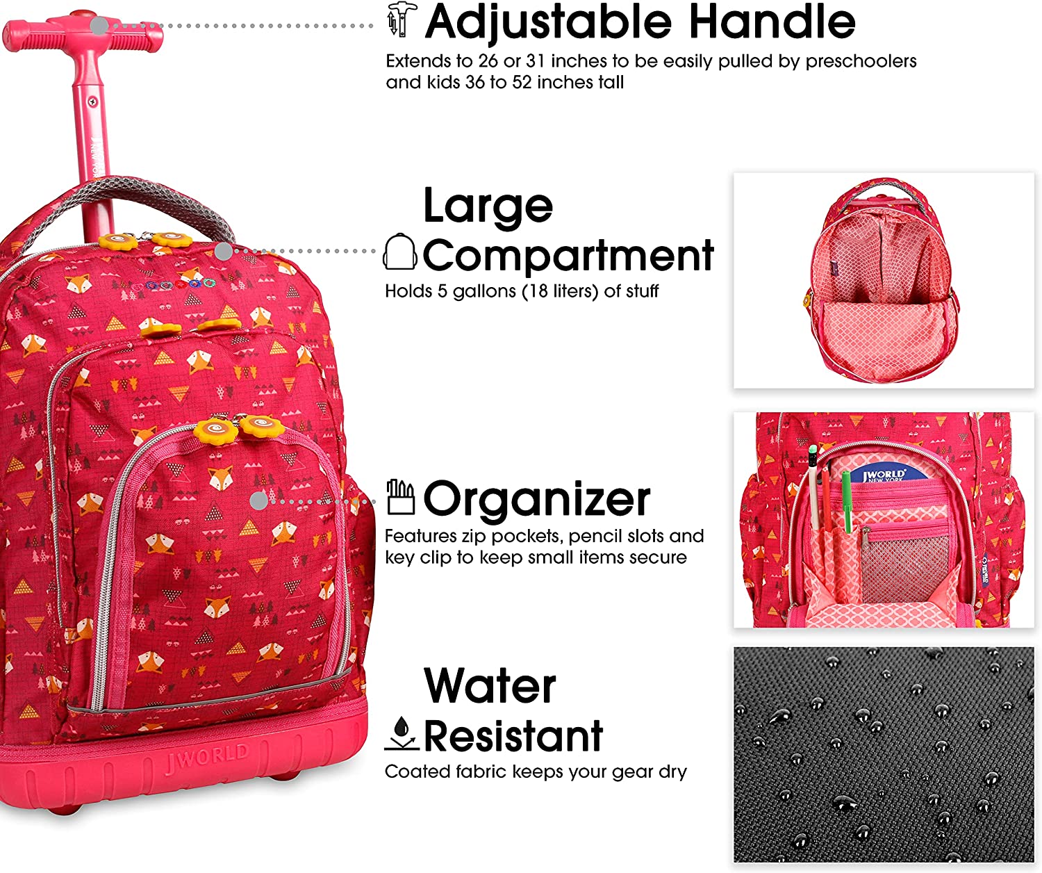 - Our Promise — At J World New York, we stand behind our products 100%. If you have any issues with this rolling backpack for girls and boys, we will make things right