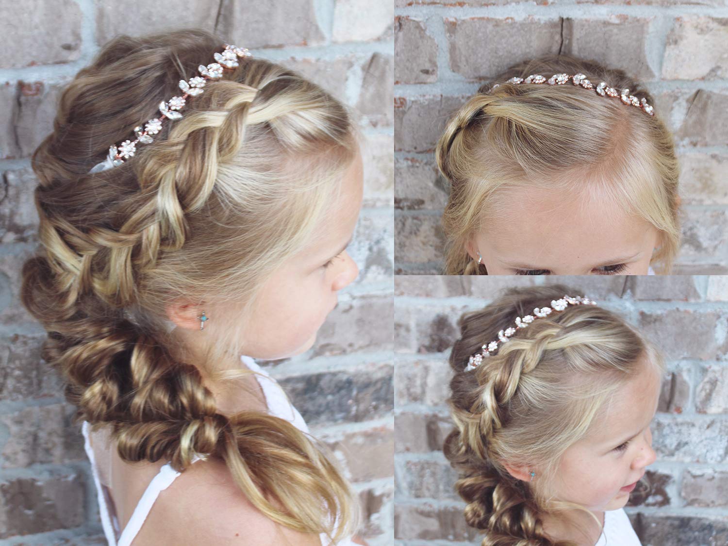 ❀This flower girl headpiece is adorned with sparkling crystal flowers and leaves. Available on soft adjustable ribbon that stays comfortable on your girl's head.
