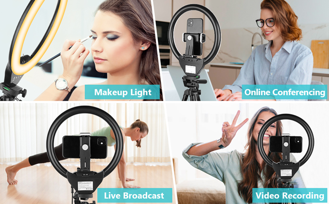 - 【Fully customizable portable tripod Stand】 Extending from 15.7 inches to 50 inches, our tripod can be adjusted to any height within seconds as needed, short enough to stand on tabletop, tall enough to fit your height. This compact circle light set comes handy when you do makeup, artworks, beauty & fashion live streaming, video calls and more.