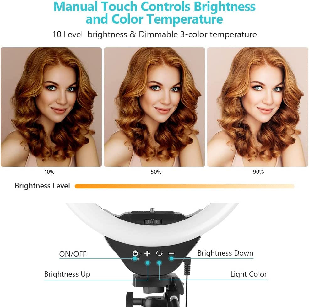 - 【High Brightness & Clever Touch Control】Sensyne selfie ring light features a high sensitivity touch panel design that has a longer life than traditional mechanical buttons. It provides full control to easily adjust the 3 color modes (cool white, warm yellow and daylight) and 10 brightness levels to meet your different needs. Perfect for Photographers, YouTubers, Vloggers, TikTokers, etc.