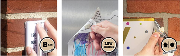 Important:• Not for use on applications where injury could result if mounted item fell.• Not recommended for use on freshly painted walls or flocked wallpaper.• Avoid direct exposure to water.• May stain some surfaces.