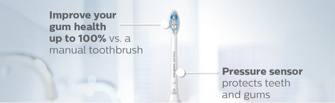 • Improve your gum health up to 100 percent with a safe and gentle experience vs. a manual toothbrush