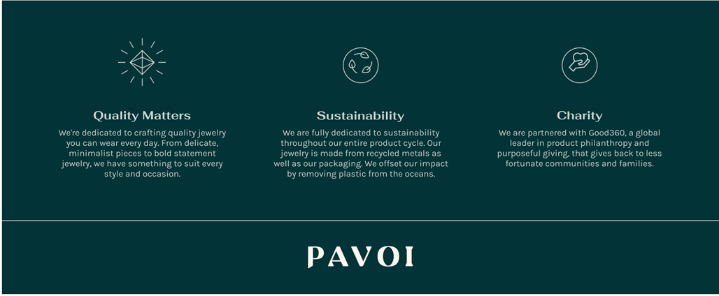 ✦ SUSTAINABILITY ✦ PAVOI is dedicated to sustainability throughout our entire product cycle. Our jewelry is made from 100% recycled materials and we package in 99% recycled and compostable materials. We work to reduce our carbon emissions and offset plastic consumption by removing 275,000 bottles from oceans annually. We are committed to maintain a balanced and eco-friendly business that minimizes our environmental impact. Trust that PAVOI is continuously working towards a greener future.