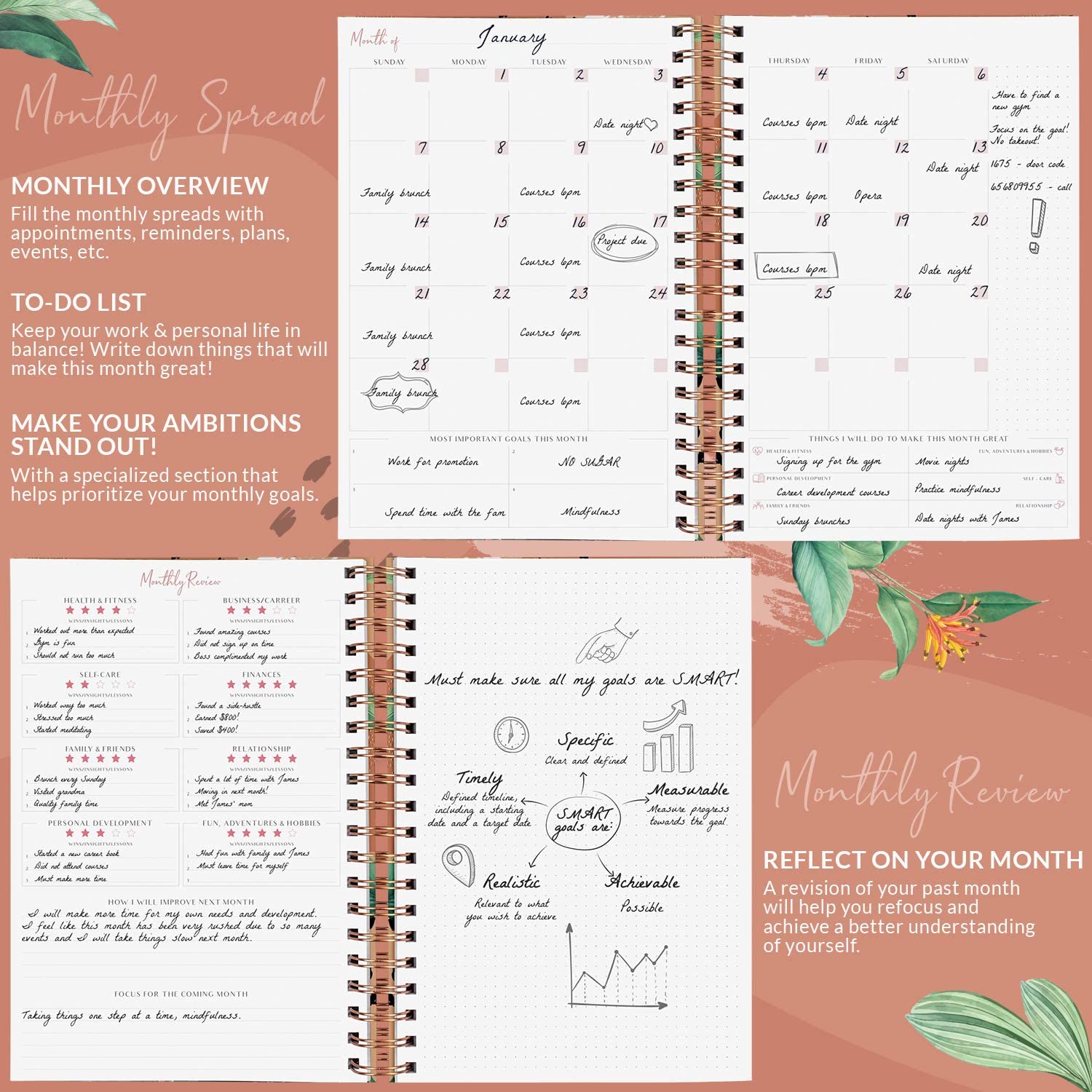 - ✓ BUILD A BALANCED & FULFILLING LIFESTYLE – With this time management planner, you will be able to not only plan your day-to-day life but also work on reaching your life goals and improving your work-life balance and overall well-being. You can do so by using goal-setting sections, habit trackers, monthly reviews, work-life balance areas, and separate work and personal to-do lists.