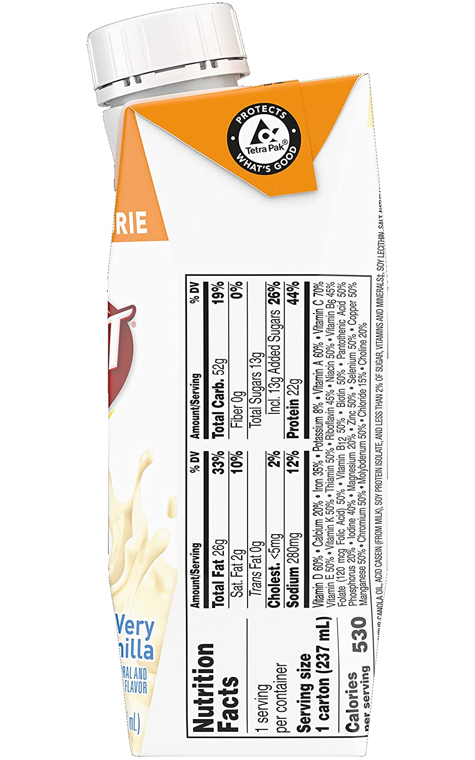 • VERY HIGH CALORIE NUTRITIONAL DRINK: With 530 calories, 22 g protein, and 26 vitamins & minerals per 8 ounce serving