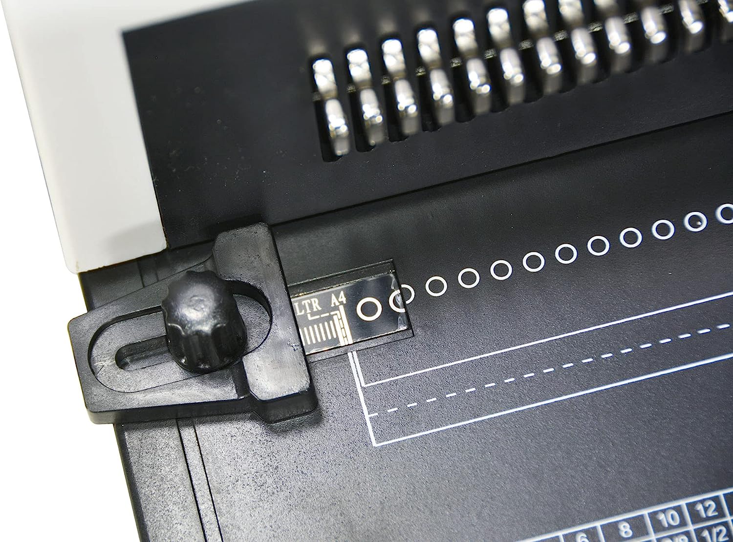 - CUSTOMIZABLE: Control where the binding machine punches holes by using the disengaging pins. Also, the open-throat design lets you punch holes and inserts binding in paper larger than letter size.