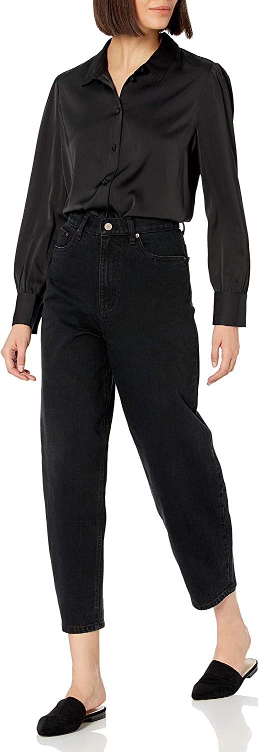 The Drop Women's Standard @Lucyswhims Long-Sleeve Button Down Stretch Satin Shirt