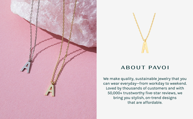 ✦ SUSTAINABILITY ✦ PAVOI is dedicated to sustainability throughout our entire product cycle. Our jewelry is made from 100% recycled materials and we package in 99% recycled and compostable materials. We work to reduce our carbon emissions and offset plastic consumption by removing 275,000 bottles from oceans annually. We are committed to maintain a balanced and eco-friendly business that minimizes our environmental impact. Trust that PAVOI is continuously working towards a greener future.