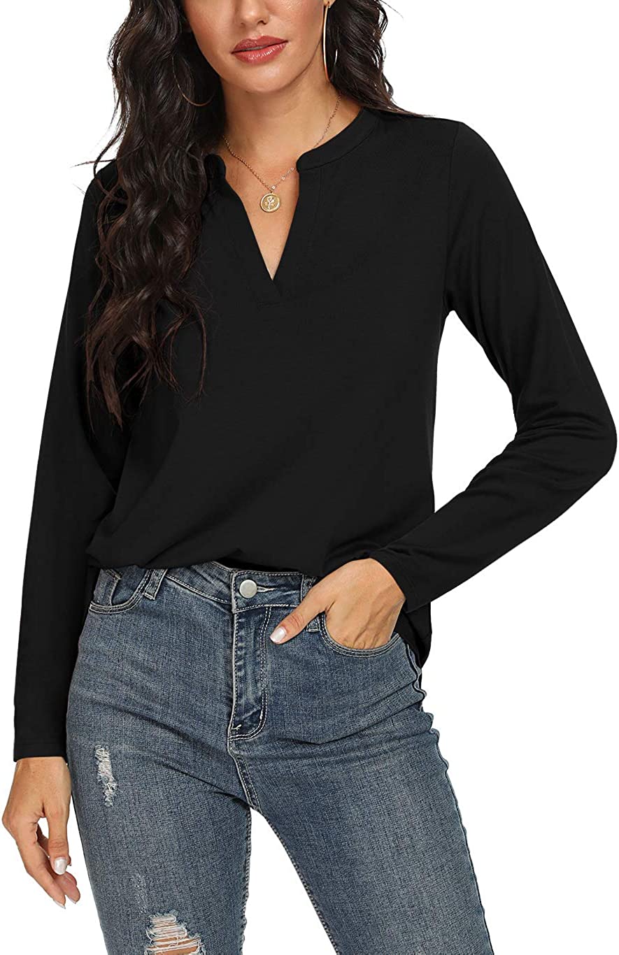 Style: Tops V neck can let your neck line looks more slender and graceful. Breathable and comfy fabric suits for autumn also wear with a coat outside in the cool days. Easy to pair with jeans, tight pants, casual pants, leggings and shorts. Perfect to dress up any style of skirts, great for work with high heel.