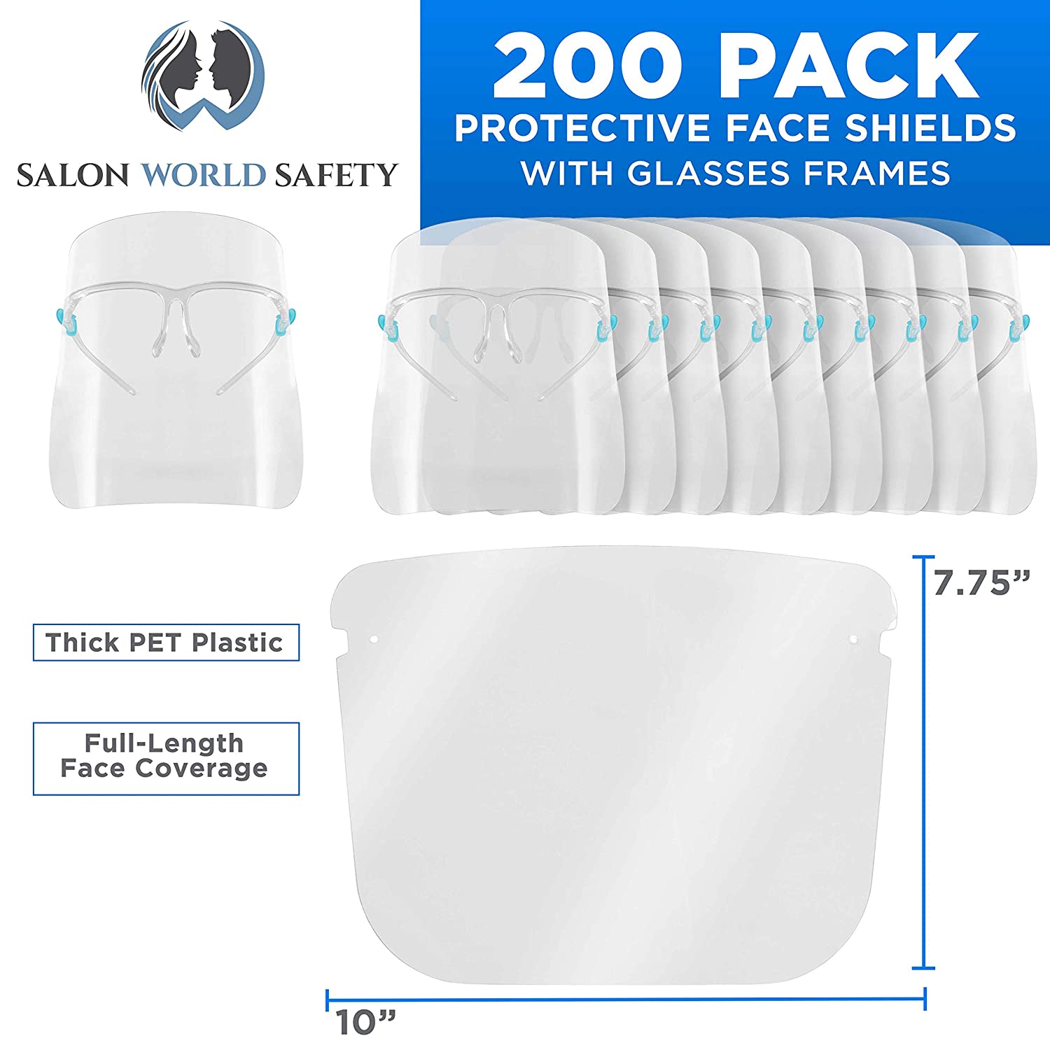 Full Face Protection while Avoiding the Headband: Safety full-length face shield with a flexible wrap-around design that provides side and front face protection. The shields have 180 degrees of protection and provide full coverage of the eyes, nose, and mouth to help prevent droplets of saliva, coughs, sneezes, and other foreign substances from reaching your face. Dimensions: 7.75" high x 10" wide.