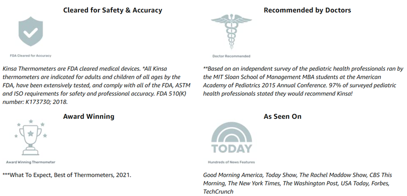 Kinsa QuickCare Smart Thermometer for Fever - Digital Medical Baby, Kid and Adult Termometro - Accurate, Fast, FDA Cleared Thermometer for Oral, Armpit or Rectal Temperature Reading