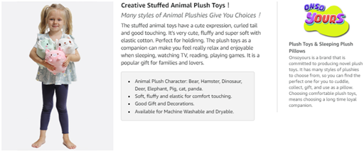 These lovely plush toys are about 9 inch length. The plush are very soft and comfortable for playing for baby and kids. And they are also a good choice to use in the office chair for decoration.