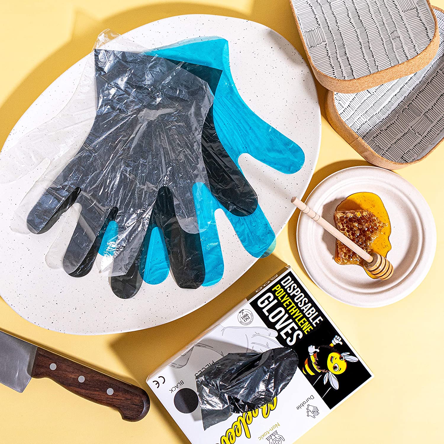 ✅ COLORFUL VARIANTS - Add a bit of fun and a splash of color to your prep space. These clear disposable poly food prep gloves are made available in wonderful hues of black, blue and clear.
