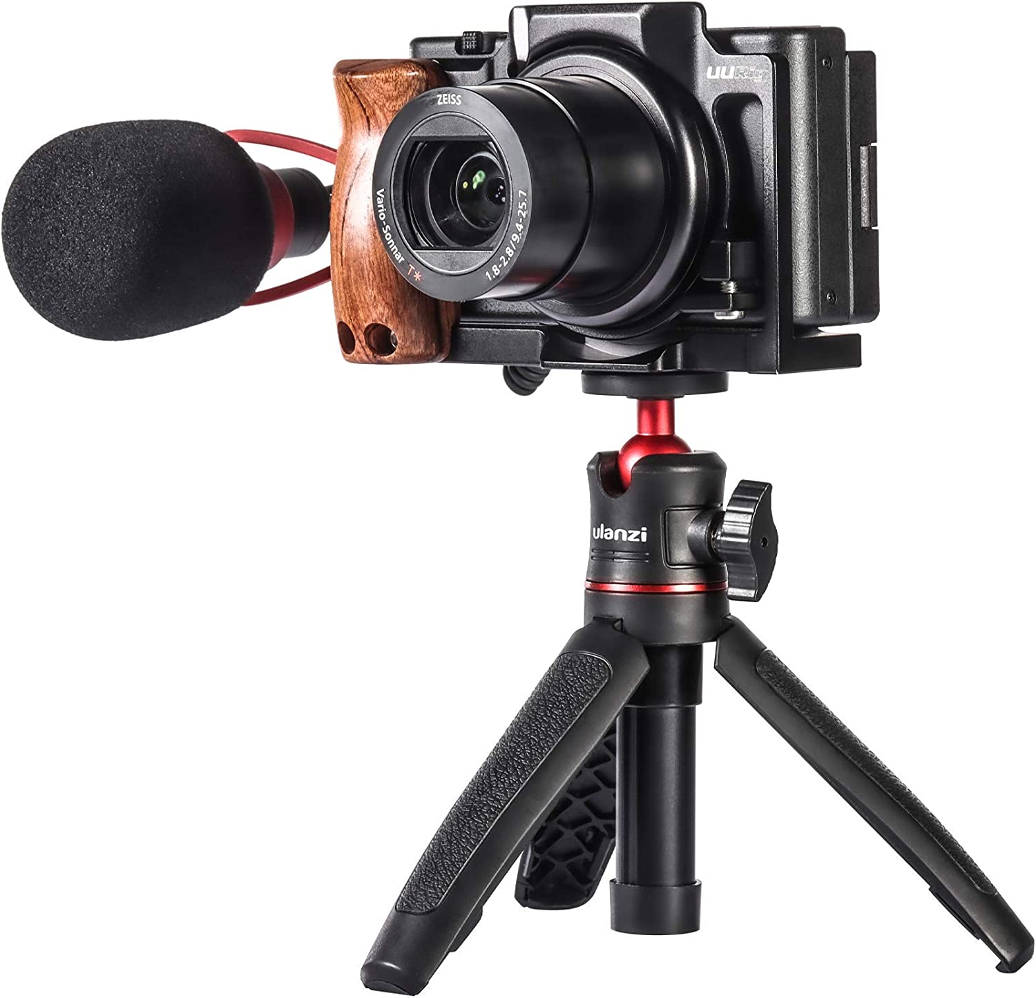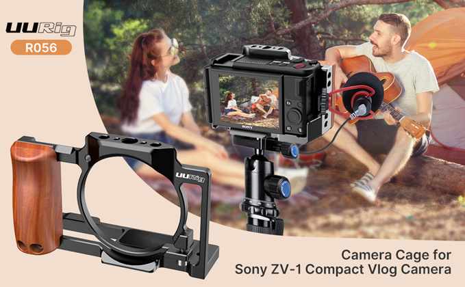 UURig ZV1 Camera Cage for Sony ZV-1 Camera Video Shooting Cage Rig Filming Accessories 3/8“ Arri Locating 1/4" Cold Shoe Extension for Microphone/ Light w Wooden Handle Grip, Vlogger Content Creator