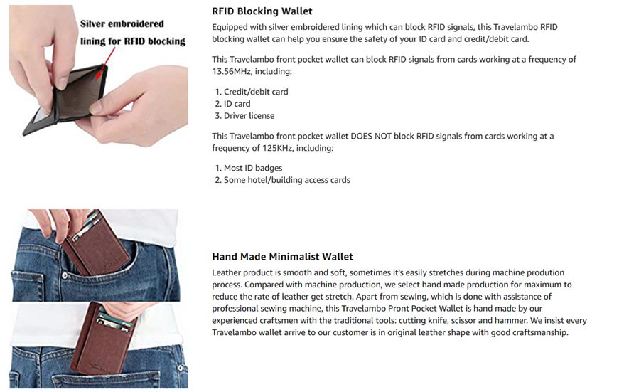 - RFID BLOCKING TESTED & APPROVED BY INDEPENDENT LAB TESTS. Our wallets have been tested for 13.56 MHz Frequency in which our credit cards, debit cards, driver license and ID cards operate. PLEASE BE NOTED THAT the signal of some ID badge, access cards and hotel room cards which operates in 142 KHz, can not be blocked by this wallet.