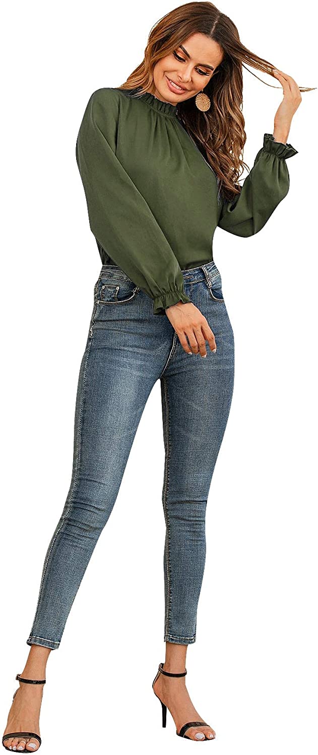 - Mock neck flounce sleeve blouse top for spring and winter. The top is not only suitable for your casual daily wear but also perfect as a wear to work/office/business wear.