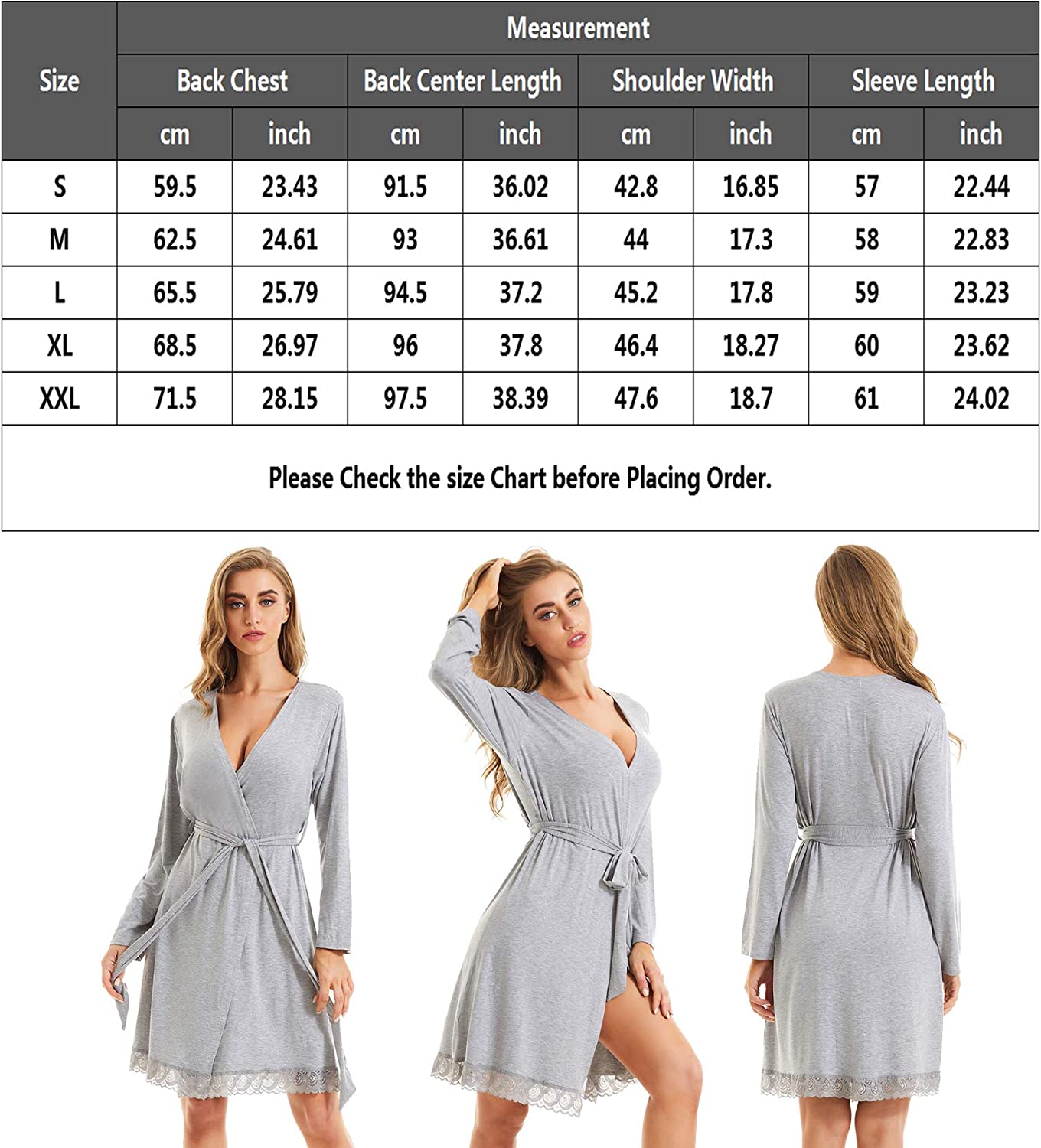 ❀Novel Design: Womens bathrobe featuring a variety of popular elements -- long sleeve, solid color, belt, lace hem, v neckline design, inside ties. Inside ties keeps it from slipping open in addition to the outside belt. Lace hem and v neckline makes you more elegant and attractive. Perfect knee length sleep robes is convenient for women night sleepwear.