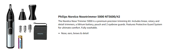 • Groom your unwanted facial hair, while protecting your sensitive skin with the Philips Norelco Nose Trimmer 5000