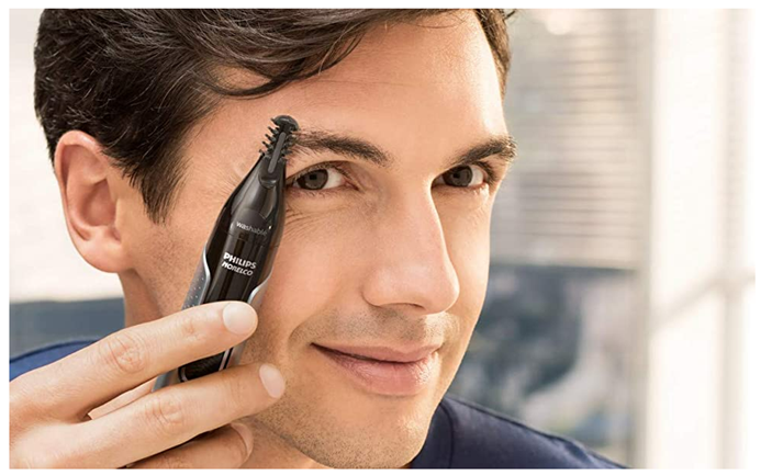 Groom unwanted facial hair using the Philips Norelco Nose Trimmer 5000, a premium precision trimming kit. The Protective Guard System privides the ultimate comfort while the rotary and detail trimmers cuts close. Use the eyebrow attachments to evenly trim your eyebrows. The long-lasting lithium battery provide multiple usage and the pouch makes the trimmer easy travel. The nose trimmer is fully washable, making it easy to clean by simply running under a warm faucet.