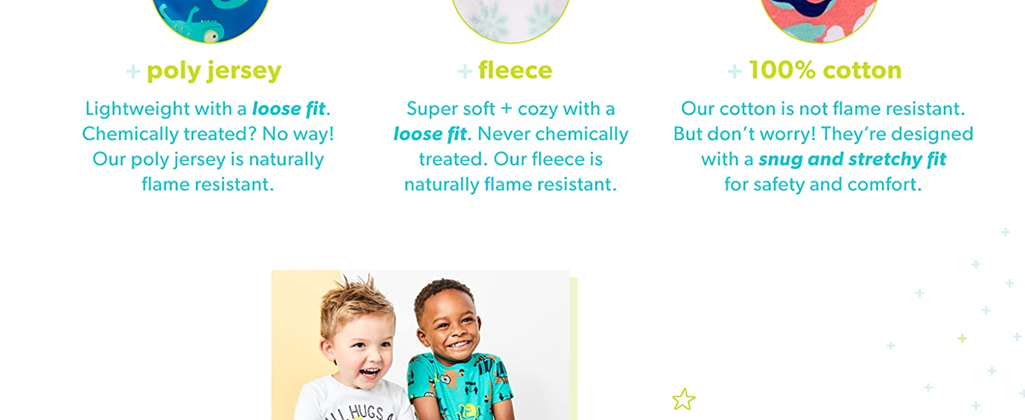• For safety, sleepwear should be either flame resistant or snug-fitting. This item is snug-fitting.