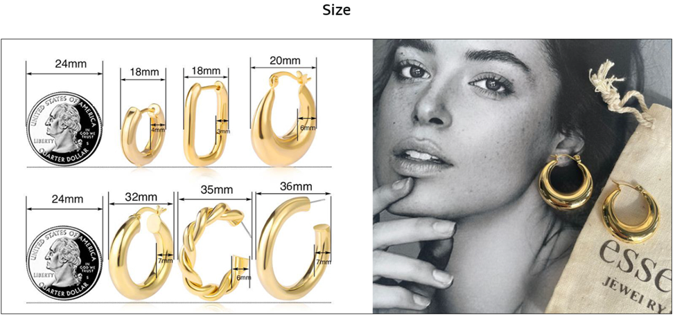 • Comfortable & Stylish: The lightweight earrings are just the perfect size for every day wear, not too big not too small. The clasp closing makes it super easy and confortable to put on and stay on. The chunky style hoop is very in right now and so cute and stylish.